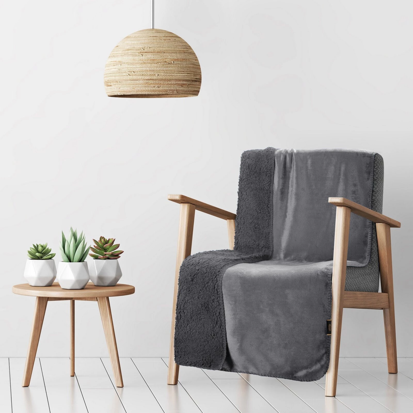 Miękki w dotyku koc jednokolorowy imitujący buklę szerokość: 70 cm, długość: 160 cm, kolor: stalowy, Gramatura: 170+170 GSM, Skład: 100% poliester