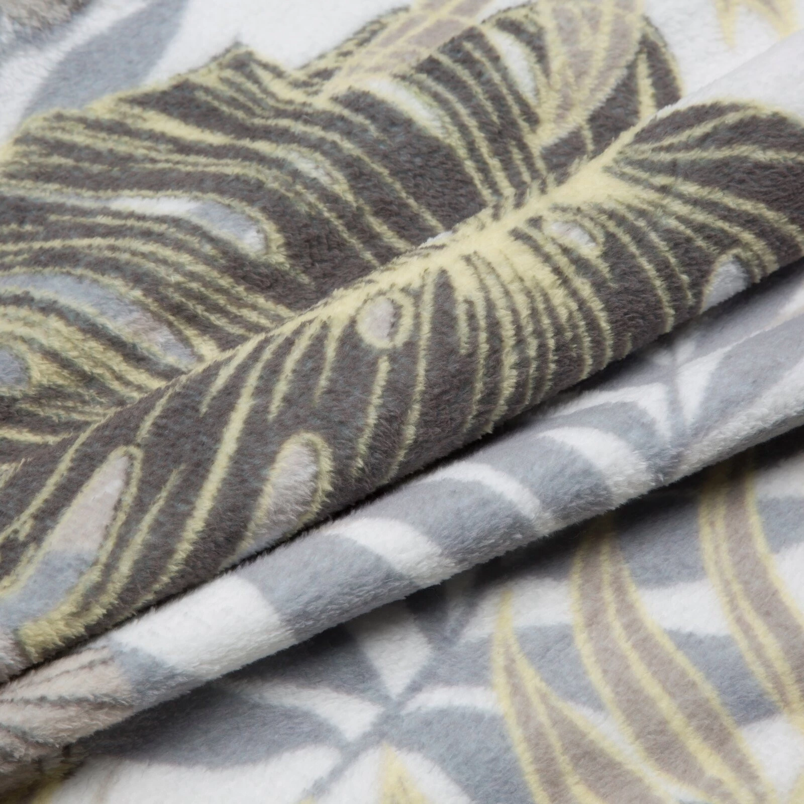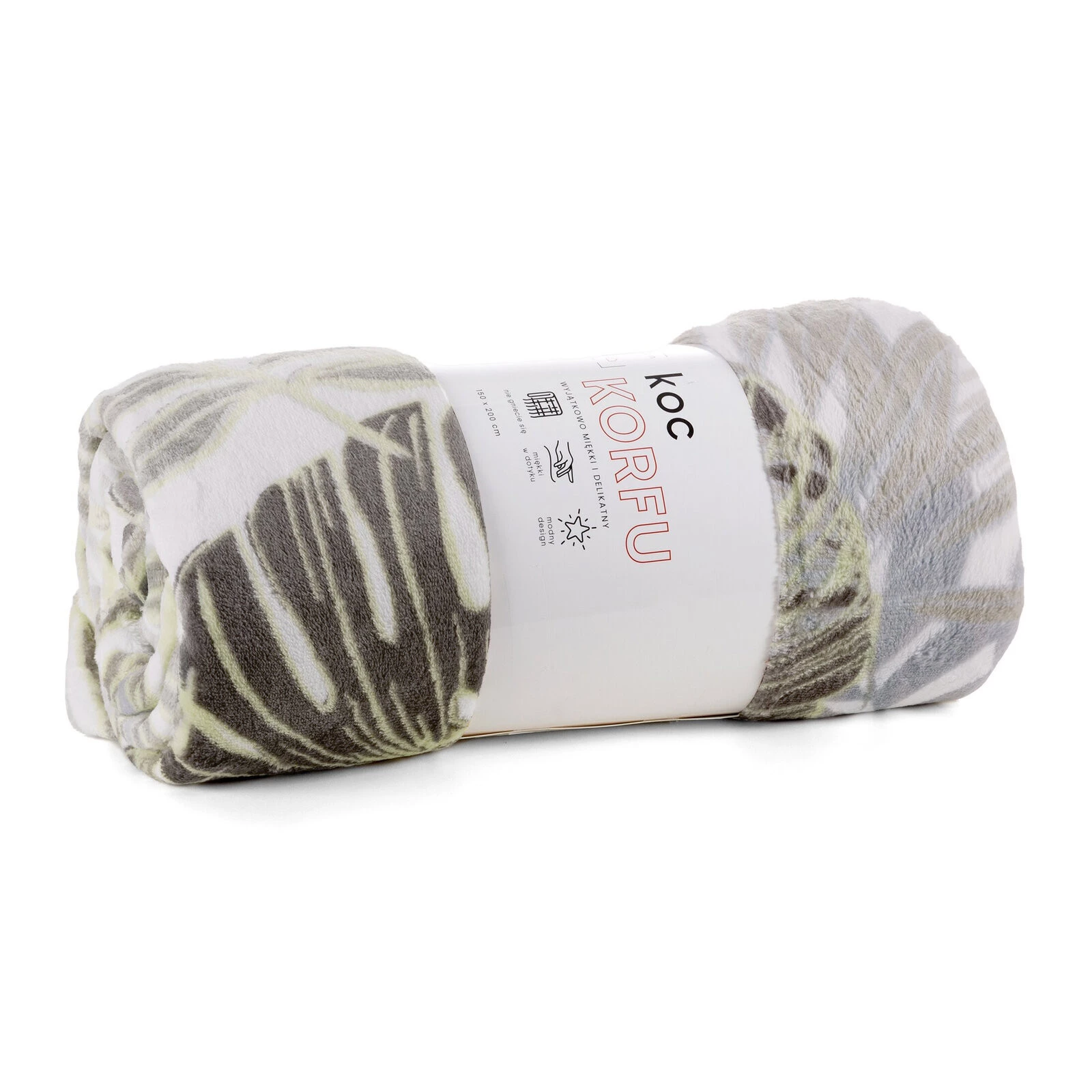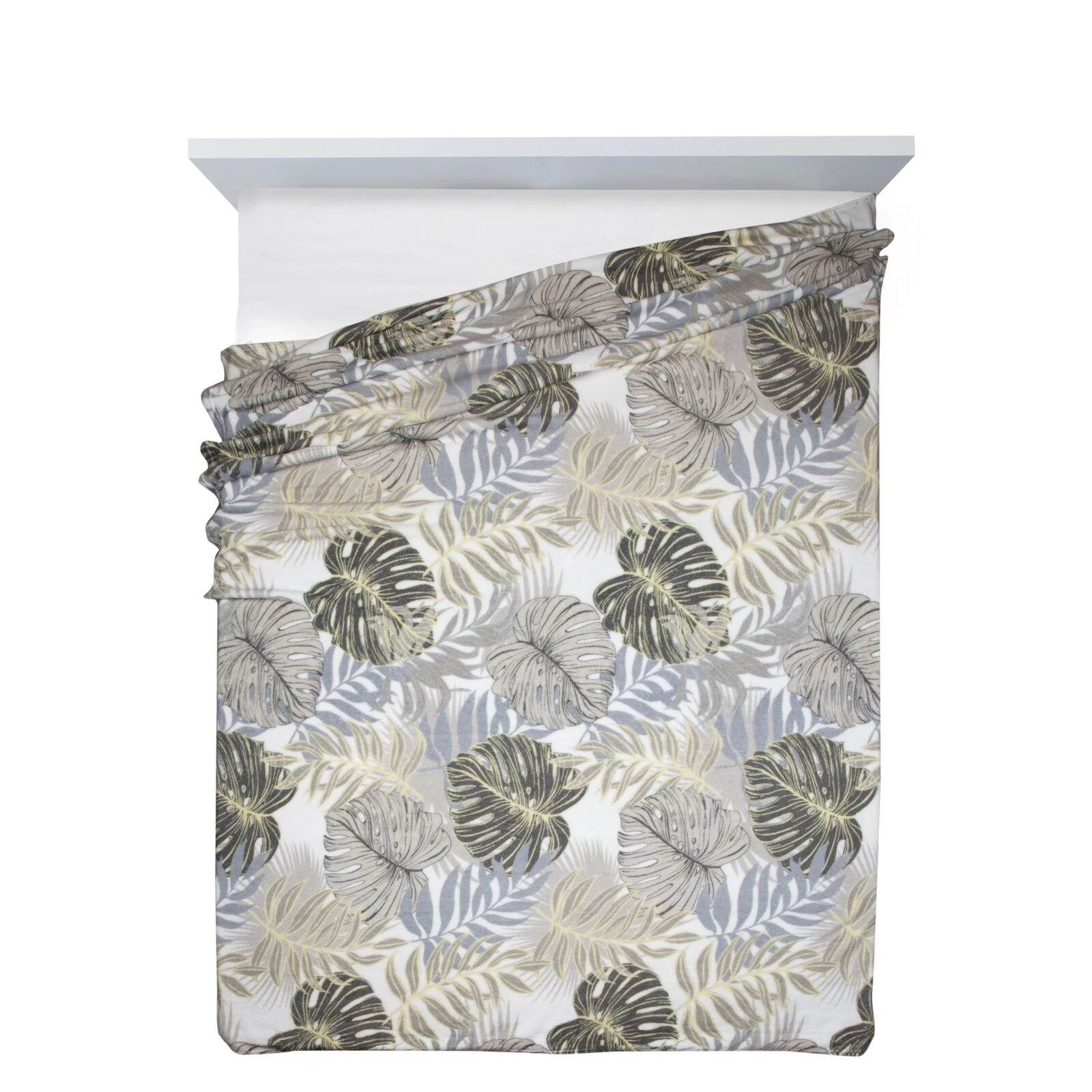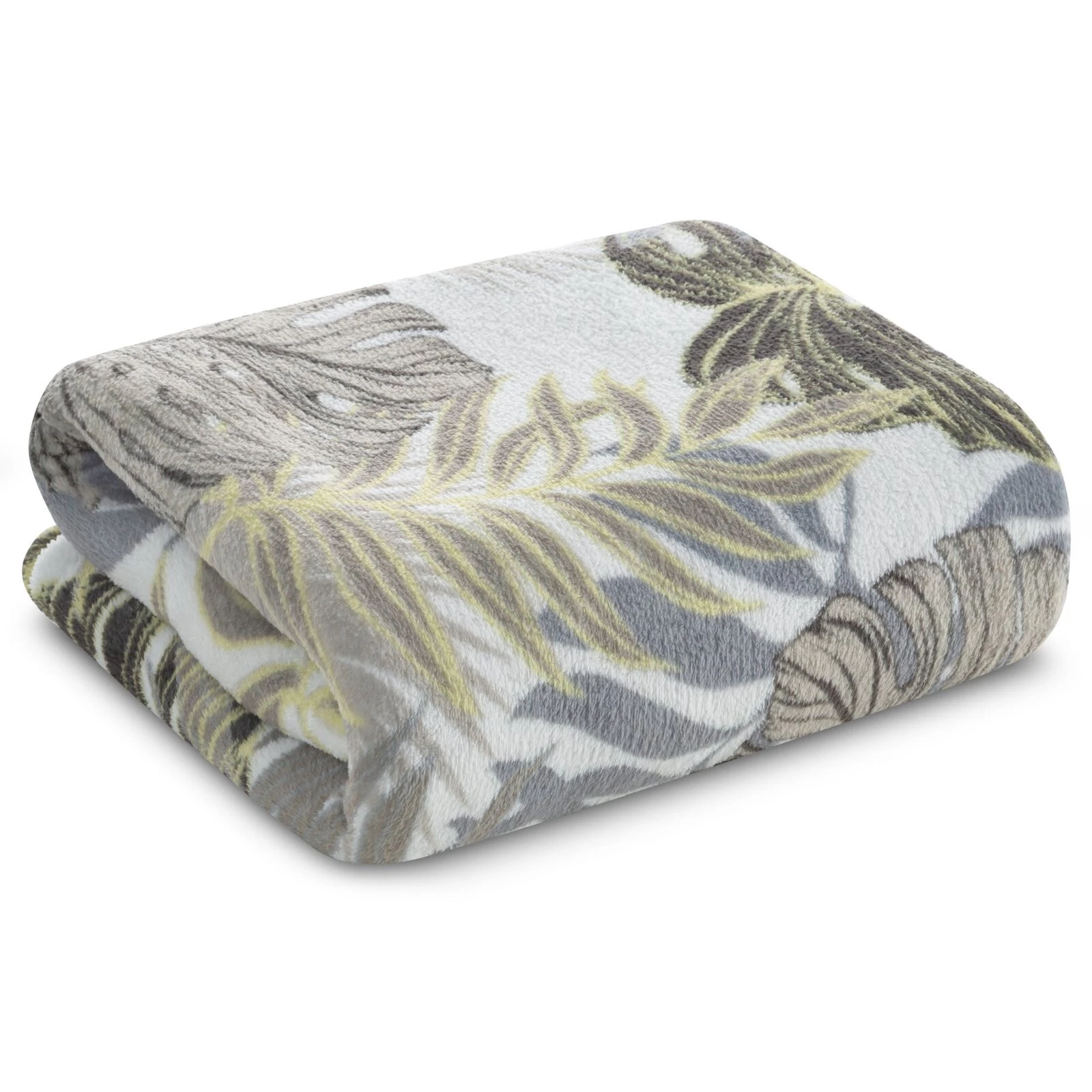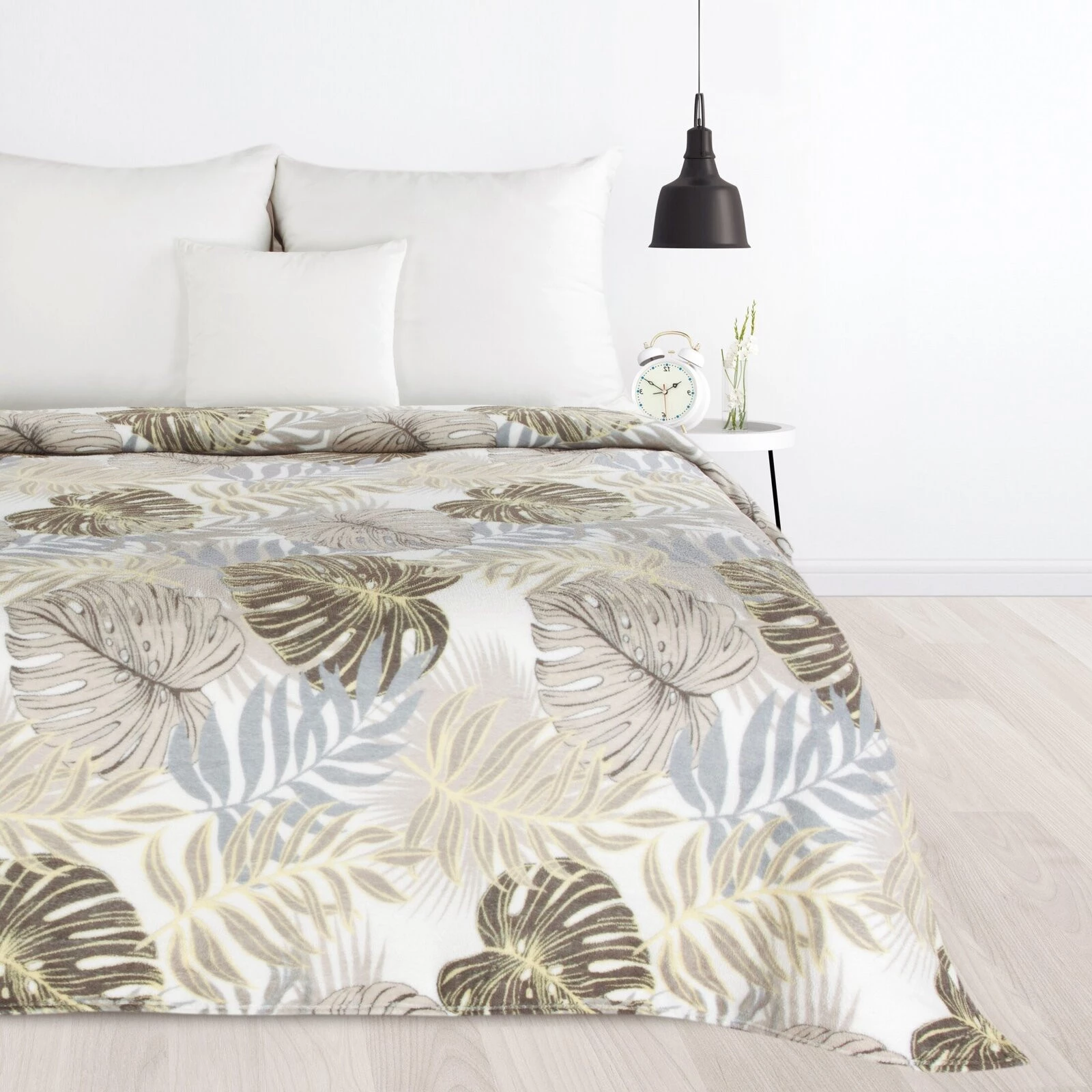 - Miękki w dotyku dwustronny koc z motywem roślinnym szerokość: 150 cm, długość: 200 cm, kolor: biały, Gramatura: 200 GSM, Skład: 100% poliester