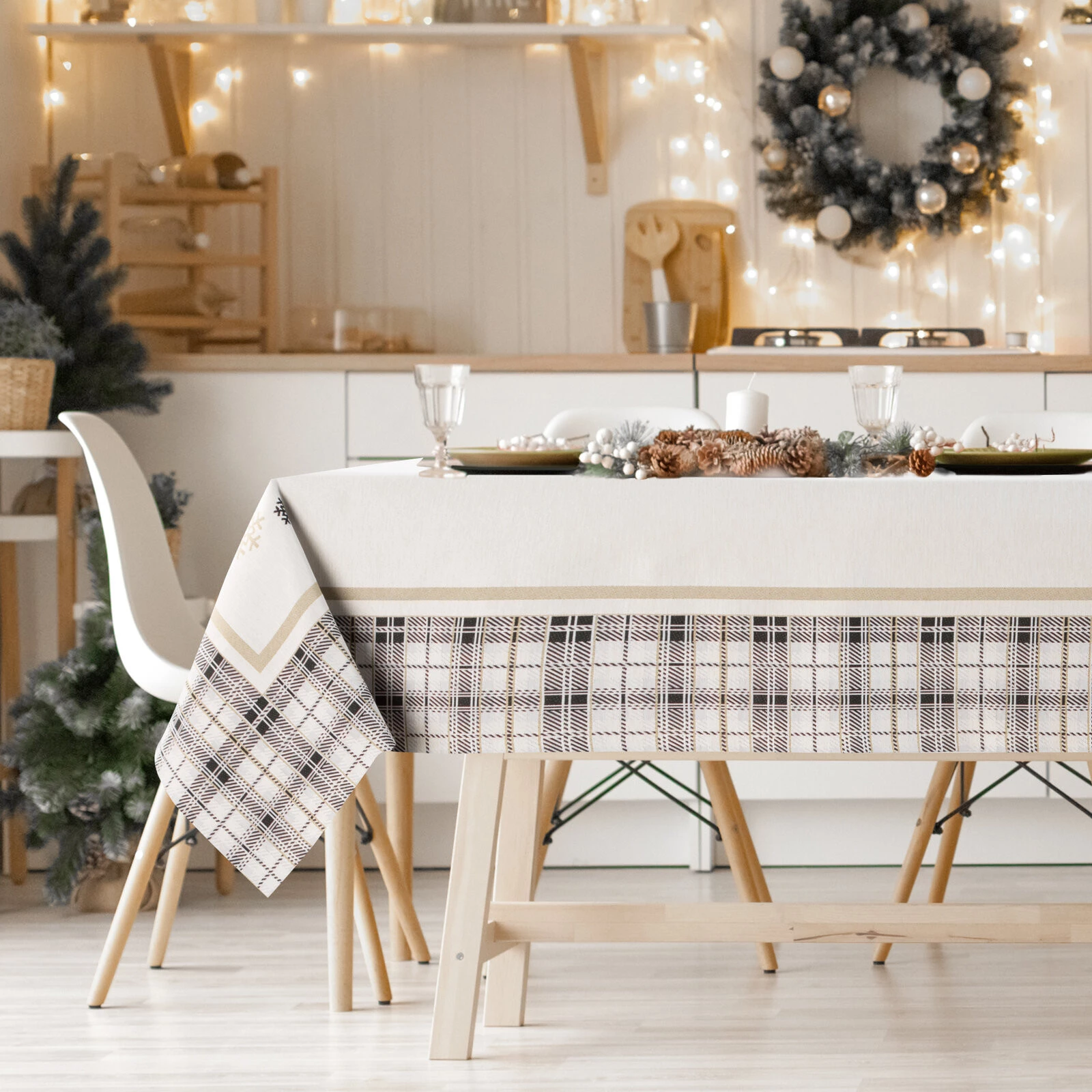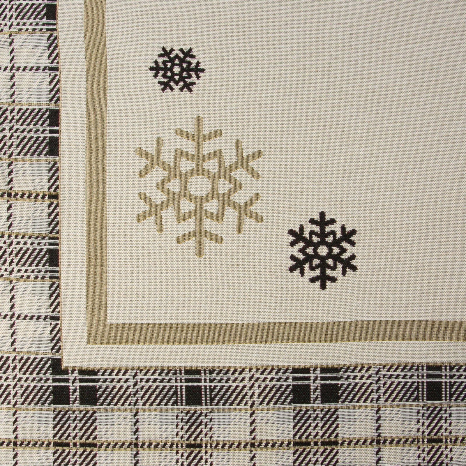 - Obrus gobelinowy szerokość: 90 cm, długość: 90 cm, kolor: beżowy, Gramatura: 410 GSM, Skład: 63% poliester, 34% bawełna, 3% akryl