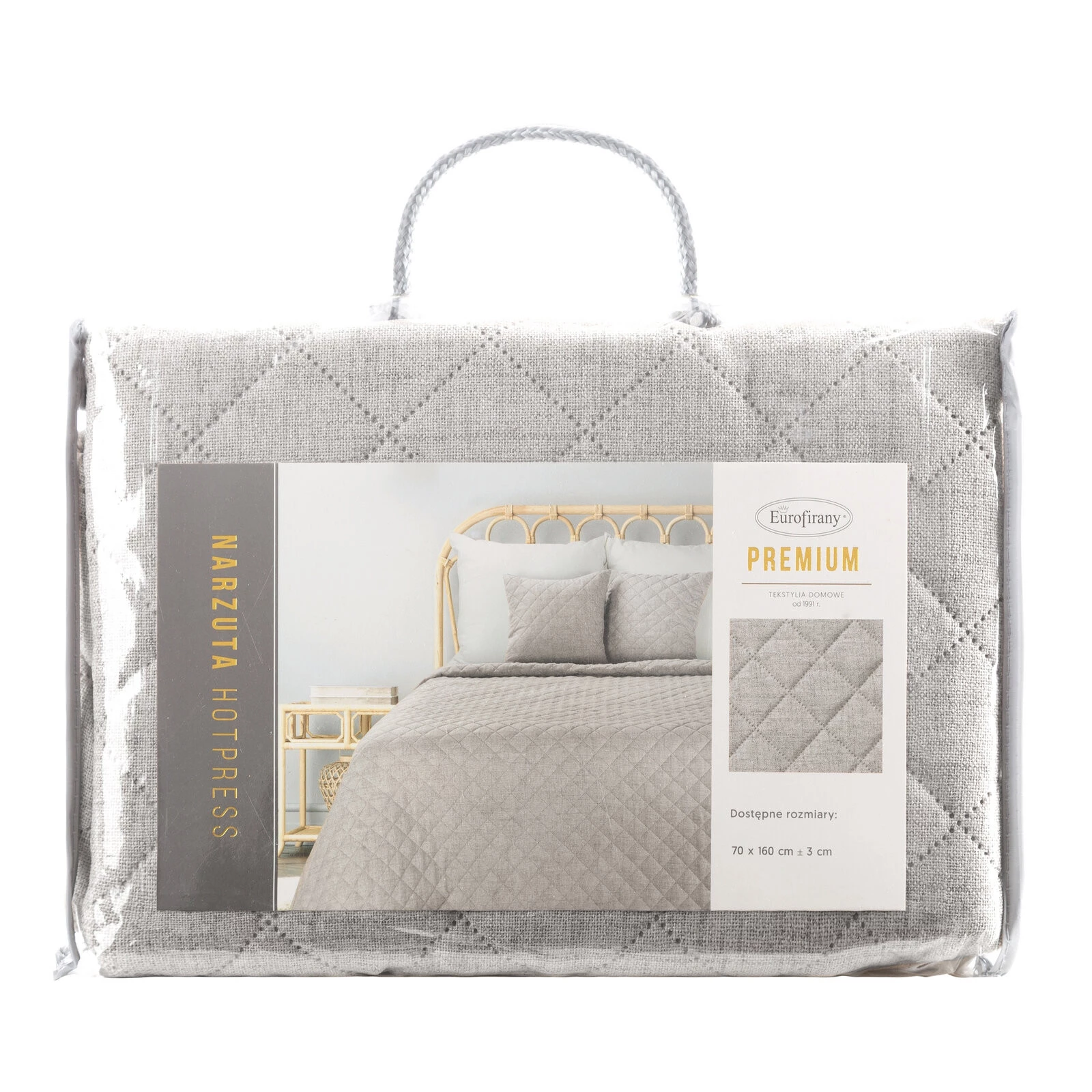 Narzuta hot press imitująca len szerokość: 170 cm, długość: 210 cm, kolor: beżowy, Gramatura: 140+120+70 GSM GSM, Skład: 100% poliester