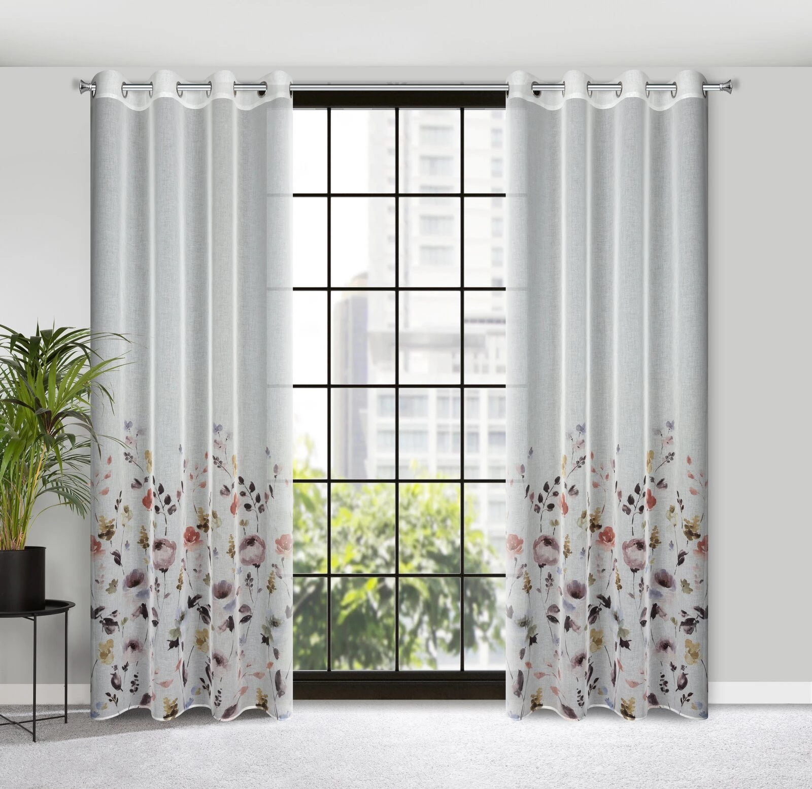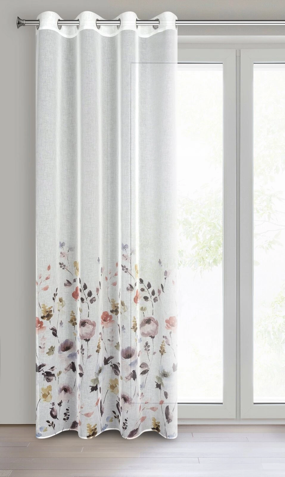 Zasłona z nadrukowanym motywem kwiatowym szerokość: 140 cm, długość: 250 cm, kolor: biały, Gramatura: 70 GSM, Skład: 100% poliester