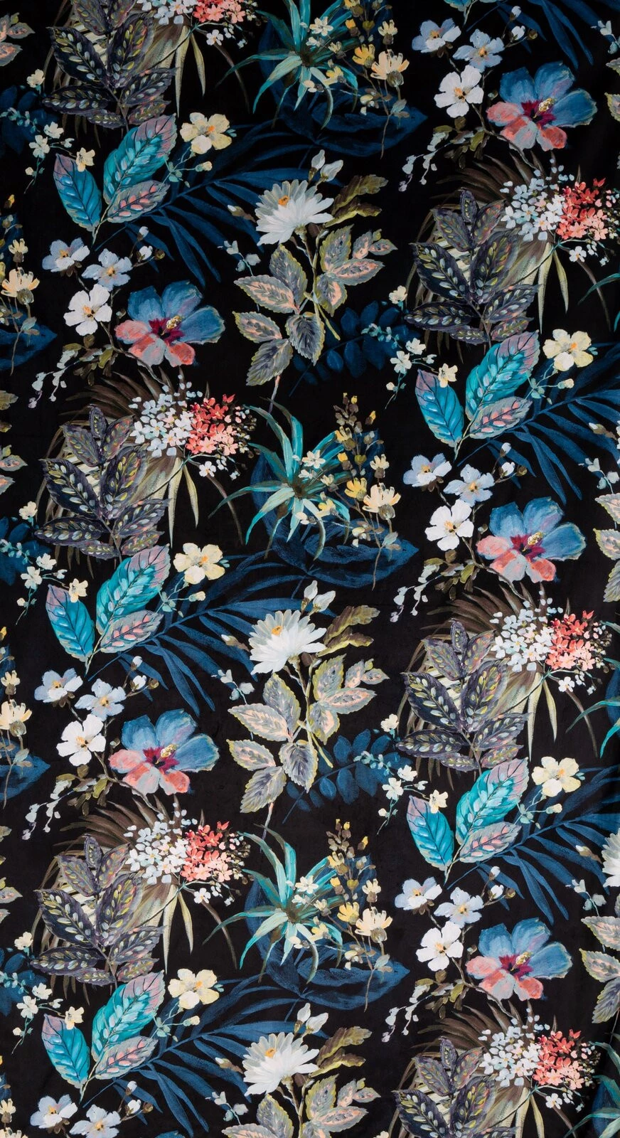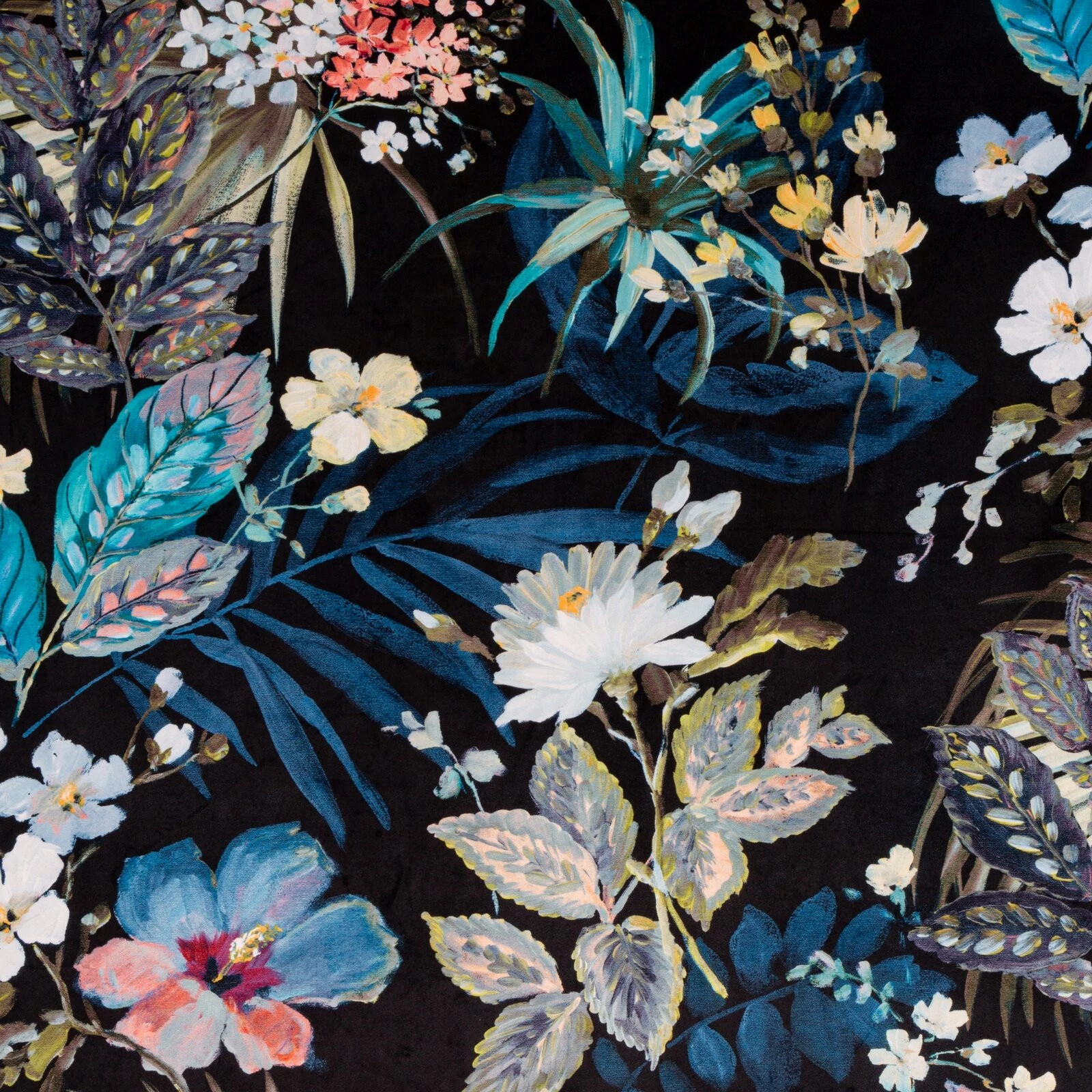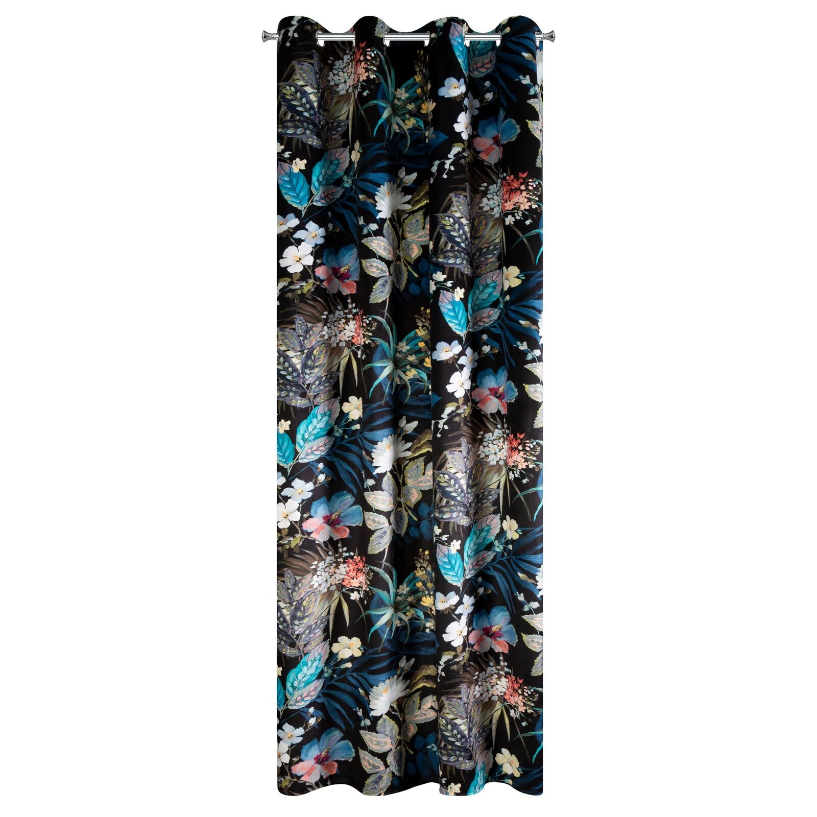 Zasłona gotowa welwetowa z motywem botanicznym szerokość: 140 cm, długość: 270 cm, kolor: czarny, Gramatura: 200 GSM, Skład: 100% poliester