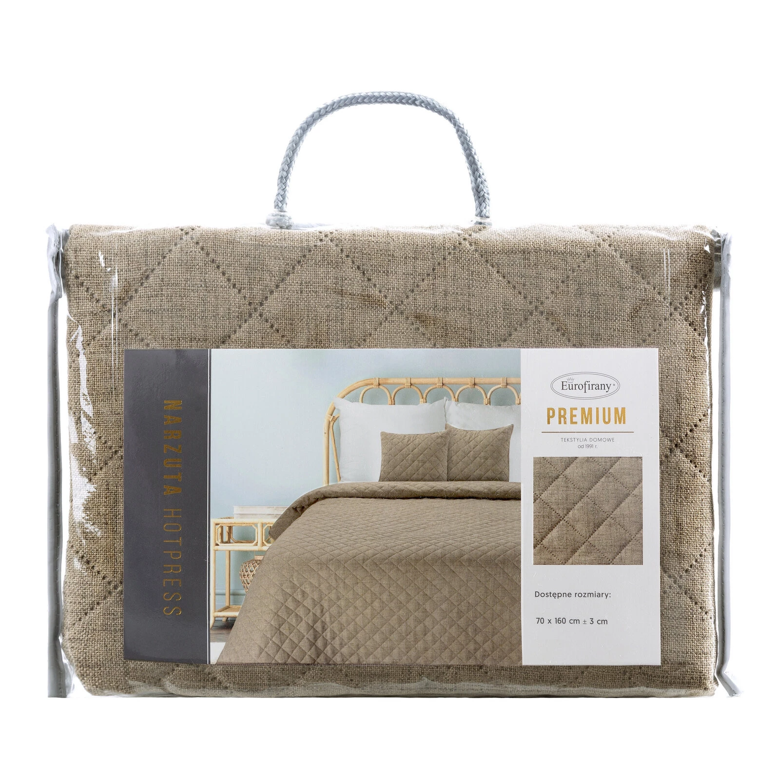 - Narzuta hot press imitująca len szerokość: 220 cm, długość: 240 cm, kolor: ciemnobeżowy, Skład: 100% poliester