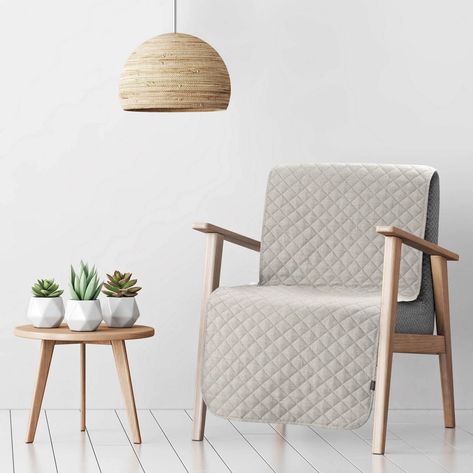 Narzuta hot press imitująca len szerokość: 70 cm, długość: 160 cm, kolor: beżowy, Gramatura: 185+120+70 GSM GSM, Skład: 100% poliester
