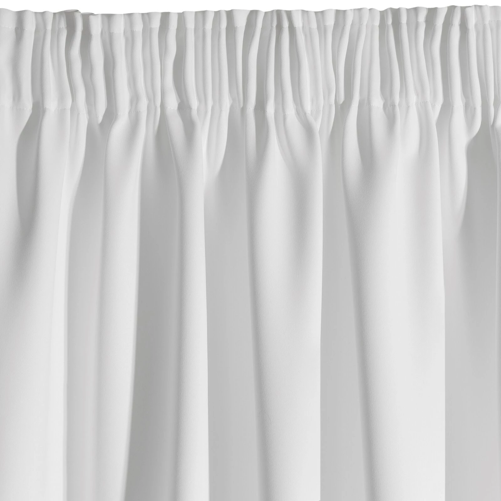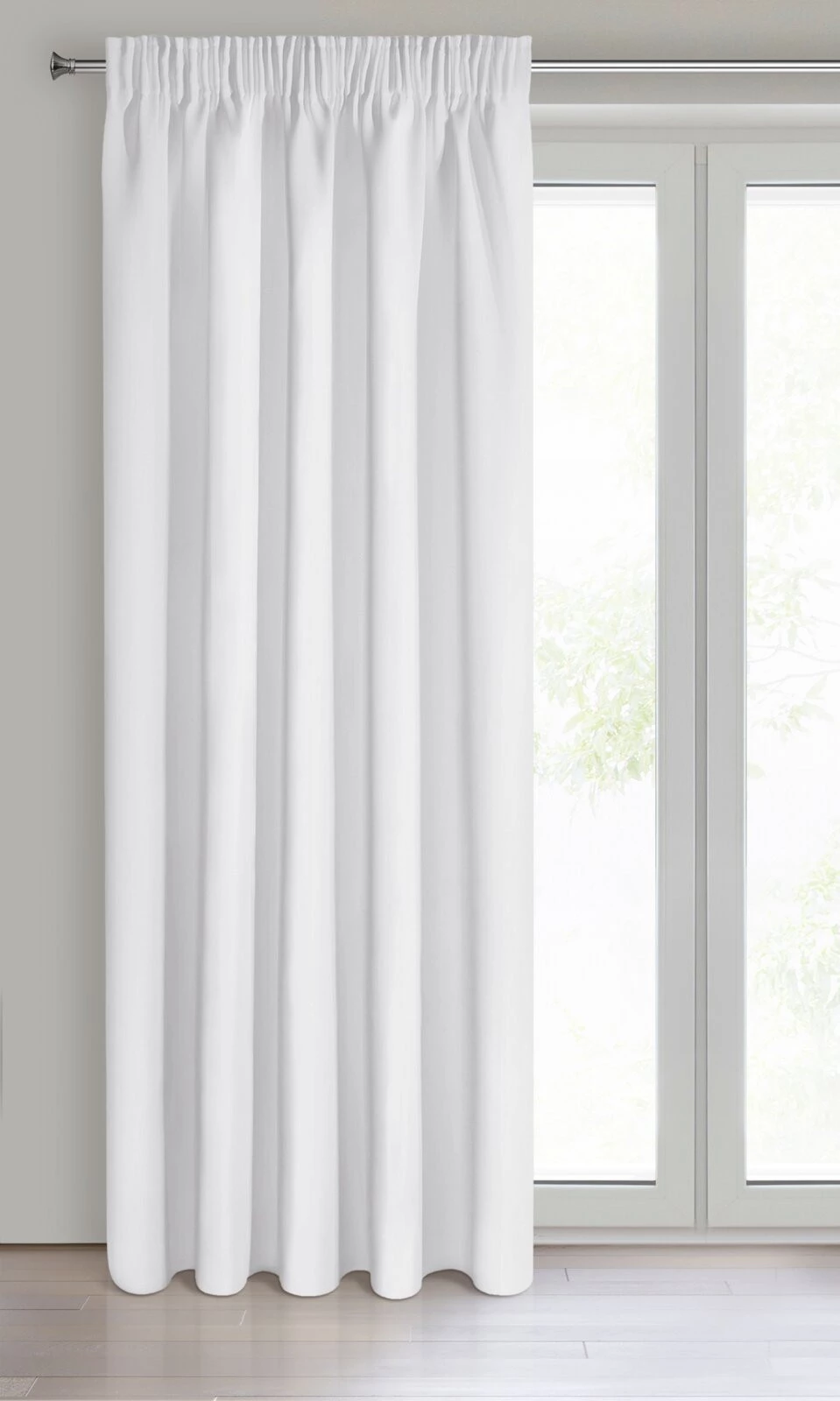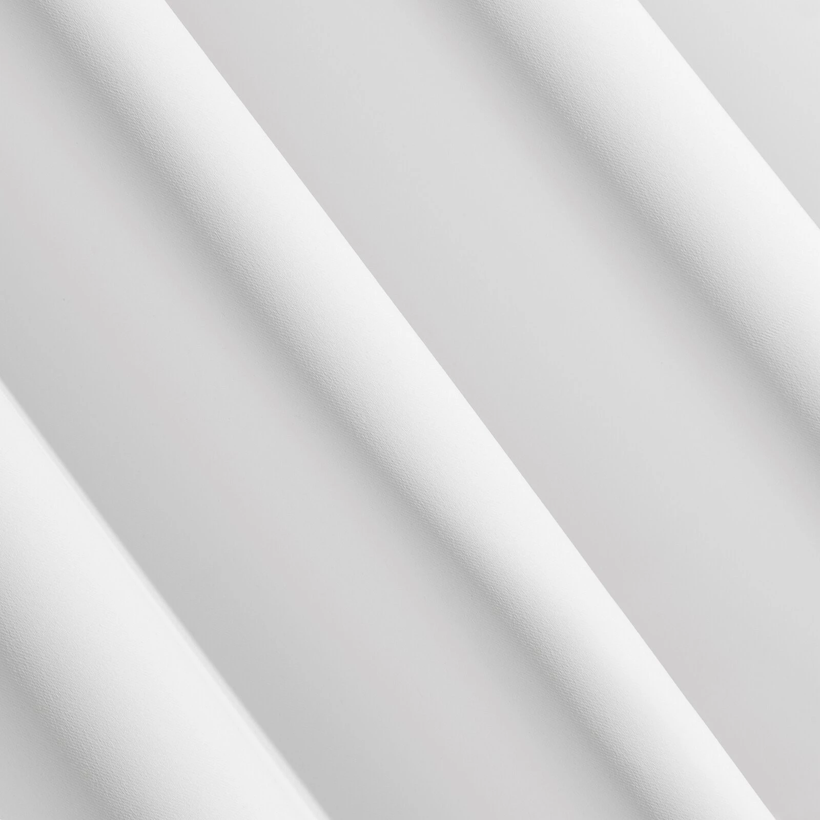 Zasłona zaciemniająca z mięsistej tkaniny typu blackout. Doskonała izolacja cieplna i akustyczna wnetrza. Jednokolorowa zasłona o minimalistycznym designie. szerokość: 140 cm, długość: 270 cm, kolor: biały, Gramatura: 210 GSM, Skład: 100% poliester