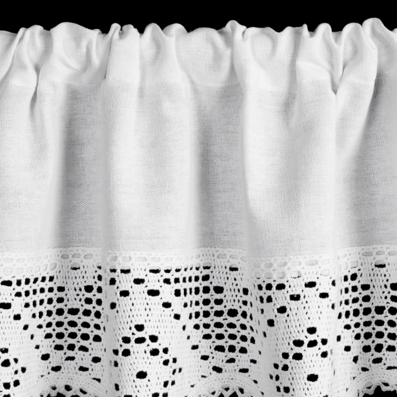 - Zazdrostka zdobiona koronką szerokość: 150 cm, długość: 30 cm, kolor: biały, Gramatura: 180 GSM, Skład: 60% bawełna, 40% poliester