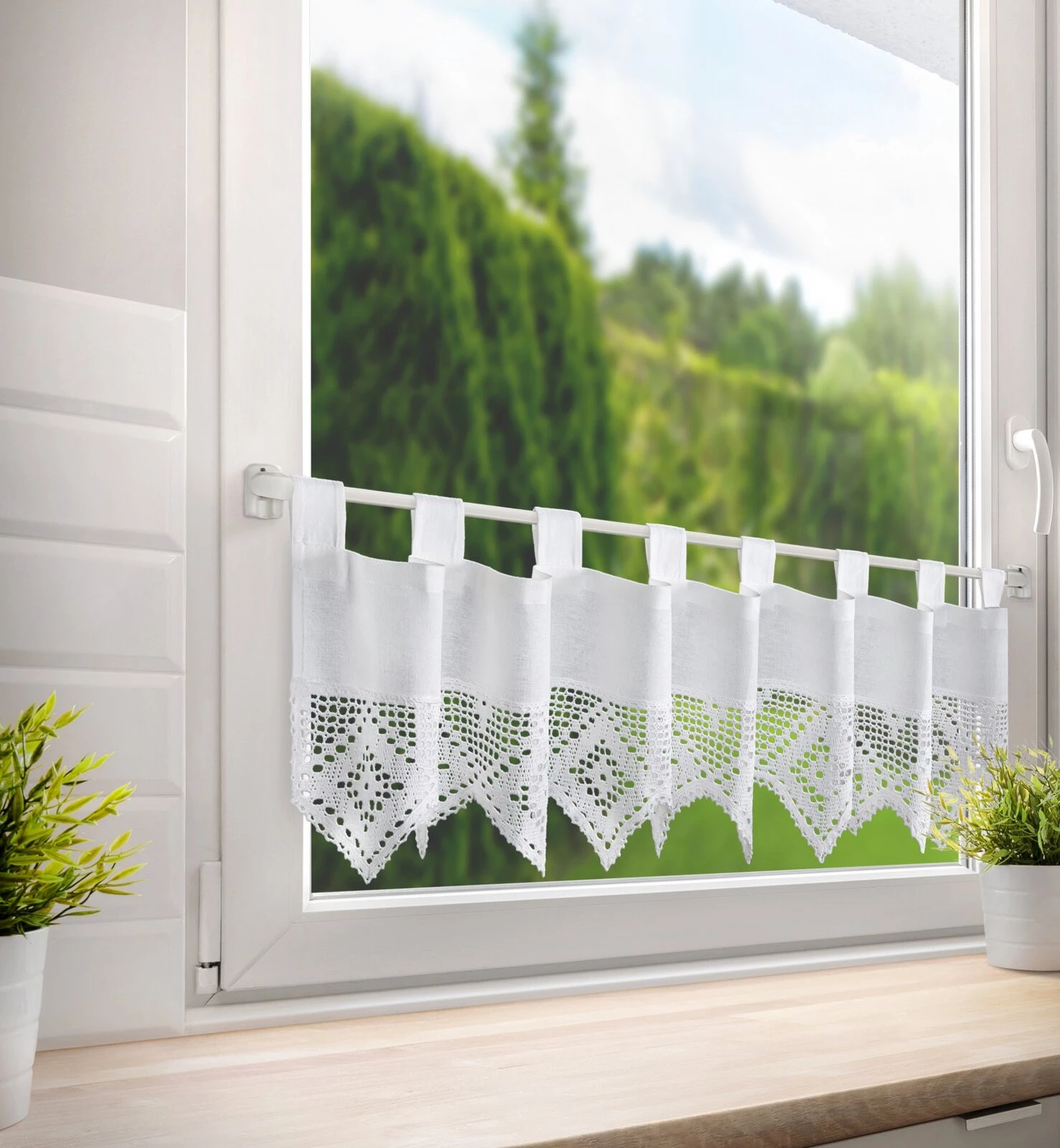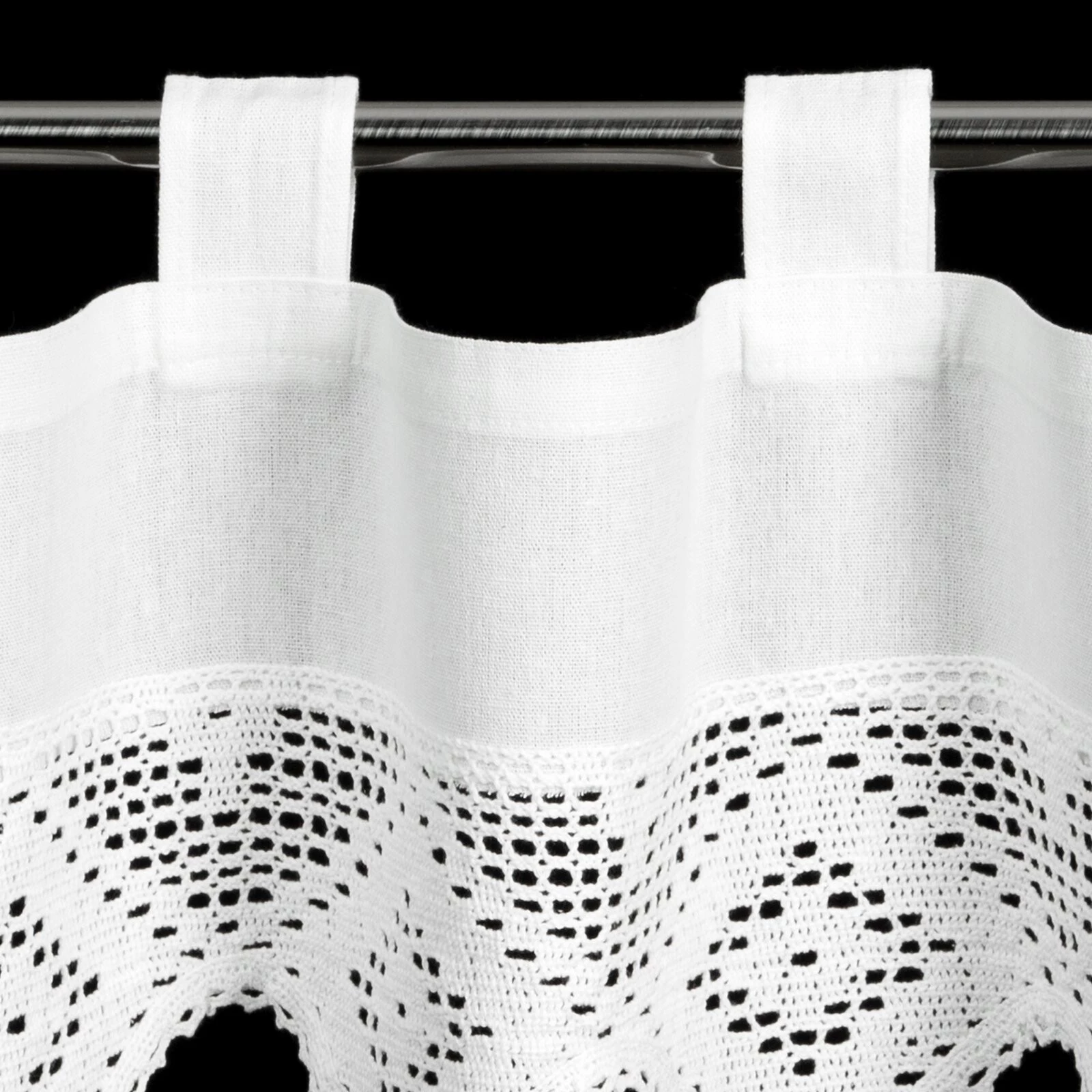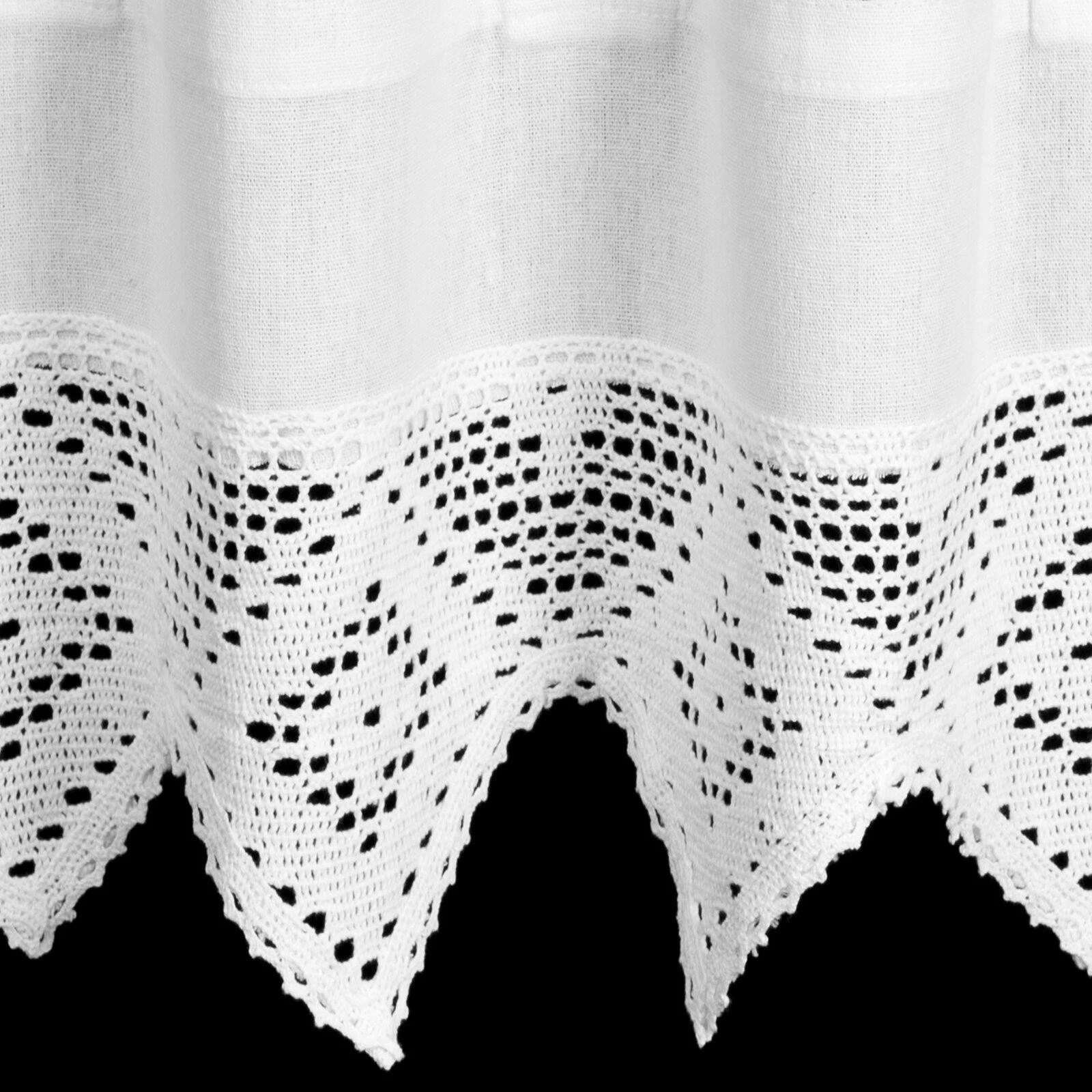 - Zazdrostka zdobiona koronką szerokość: 150 cm, długość: 30 cm, kolor: biały, Gramatura: 180 GSM, Skład: 60% bawełna, 40% poliester