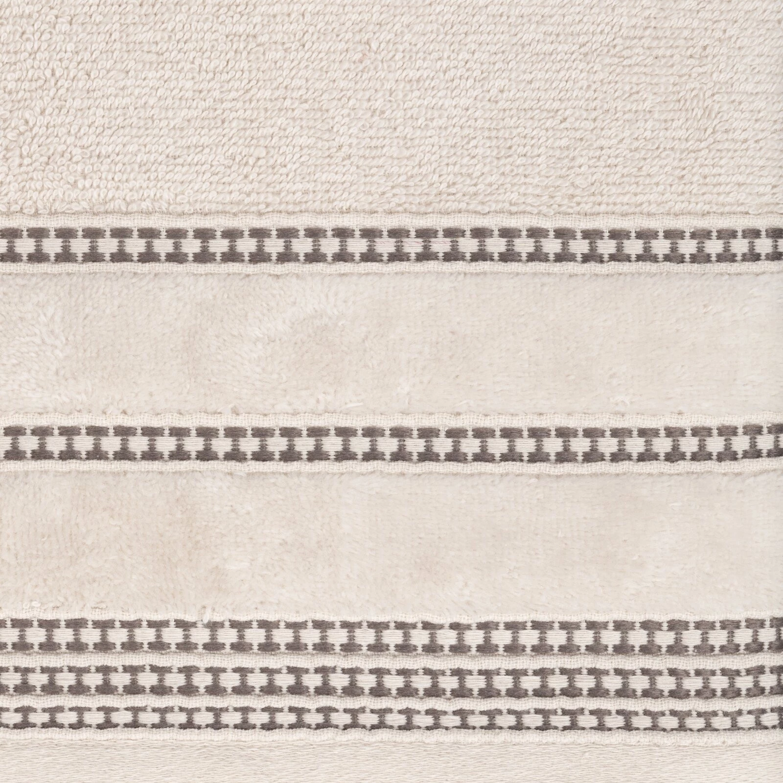 Ręcznik z ozdobną, welurową bordiurą w pasy szerokość: 30 cm, długość: 50 cm, kolor: beżowy, Gramatura: 500 GSM, Skład: 100% bawełna; część ozdobna: 100% poliester