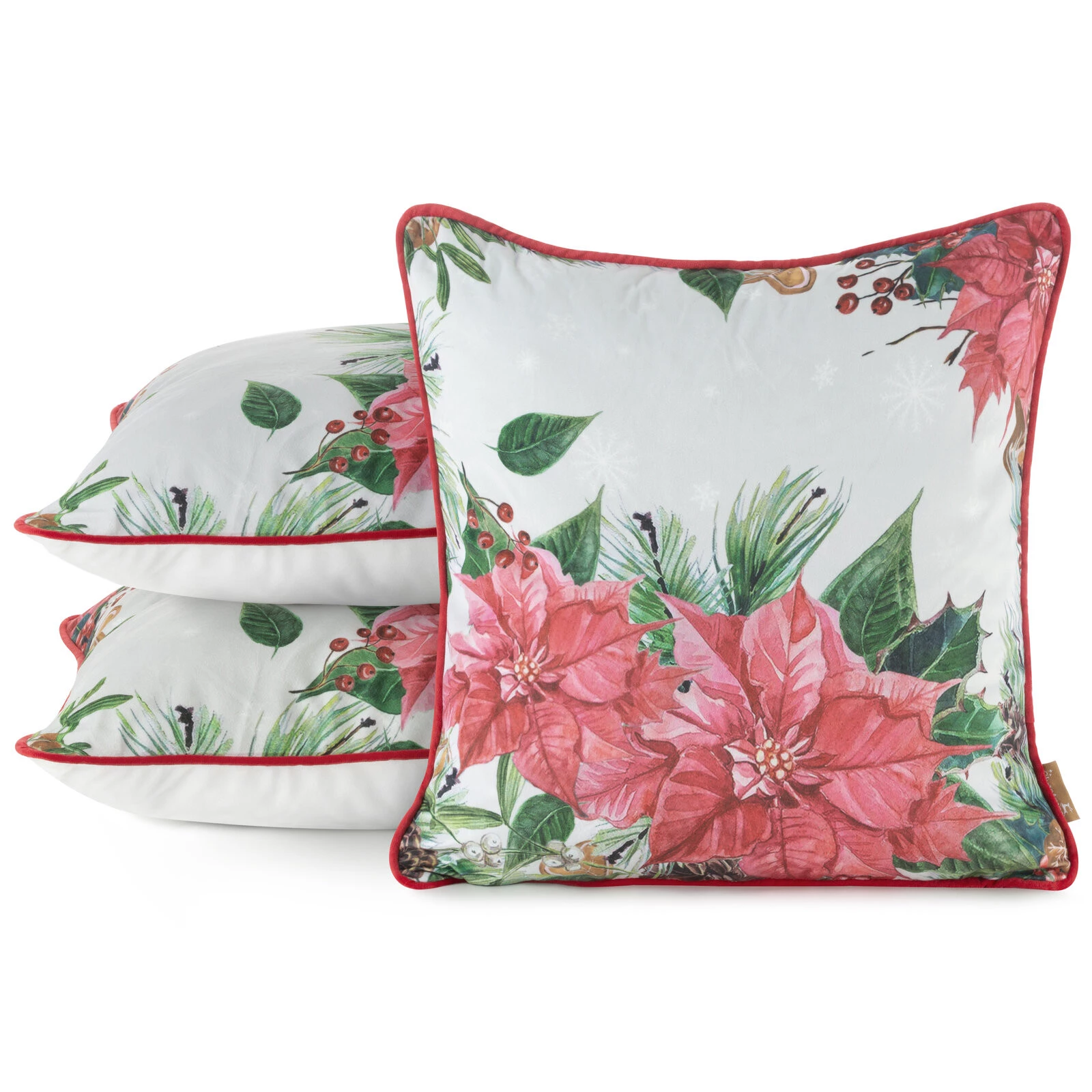 Poszewka z nadrukowanym motywem świątecznym szerokość: 45 cm, długość: 45 cm, kolor: różowy, Skład: 100% poliester