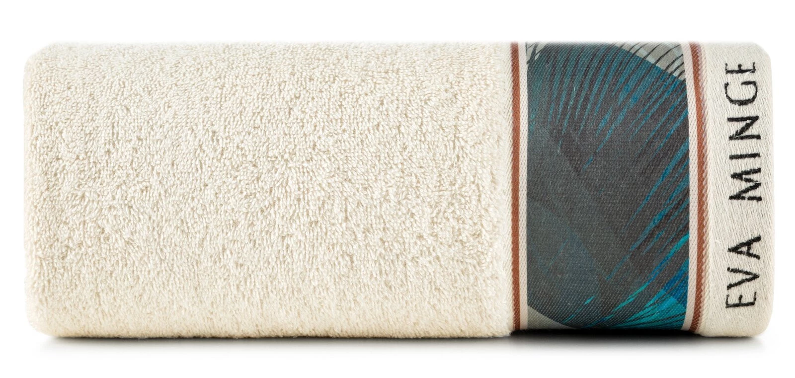 Ręcznik z drukowaną bordiurą szerokość: 70 cm, długość: 140 cm, kolor: kremowy, Gramatura: 485 GSM, Skład: 100% bawełna; część ozdobna: 94% bawełna, 6% poliester