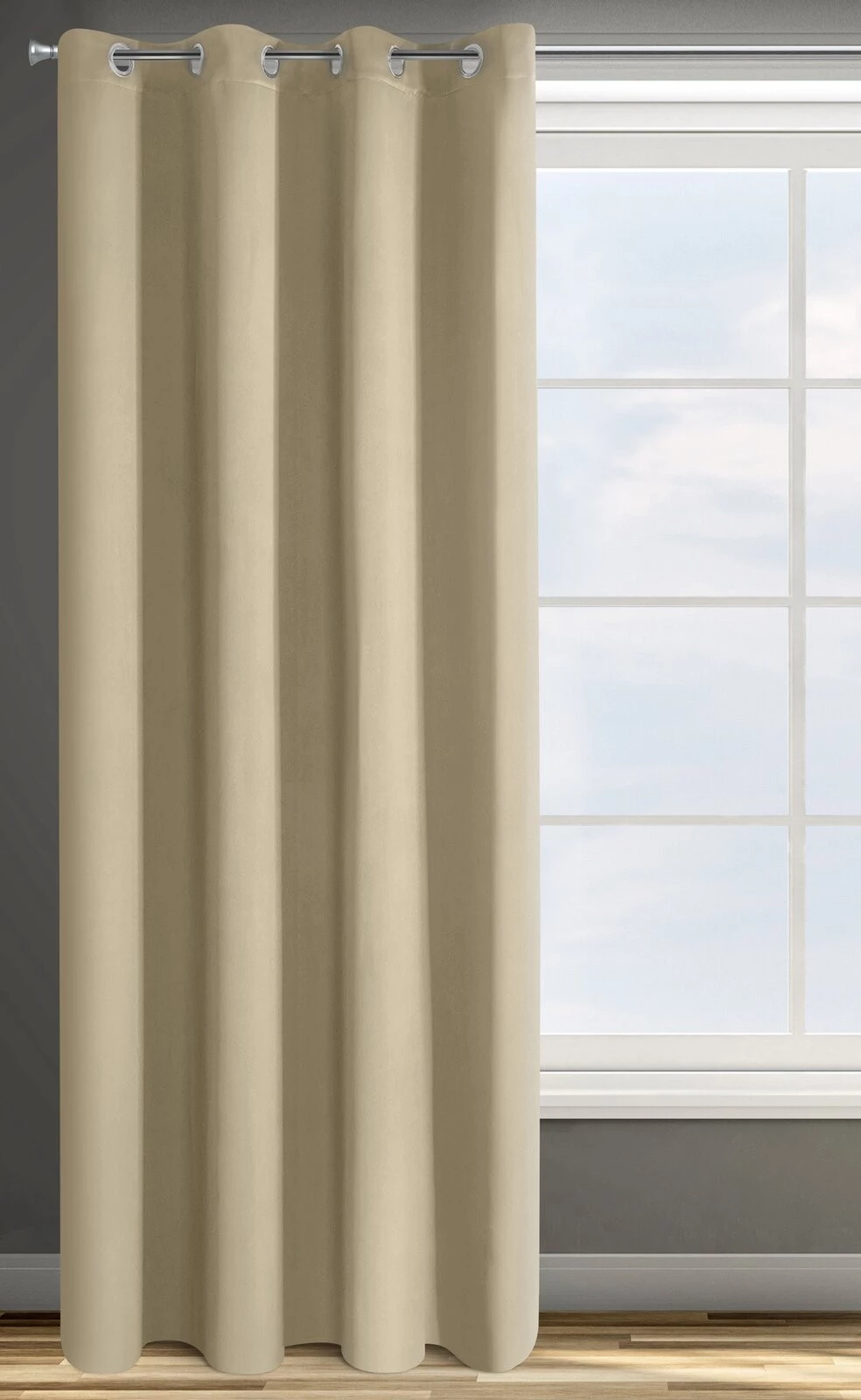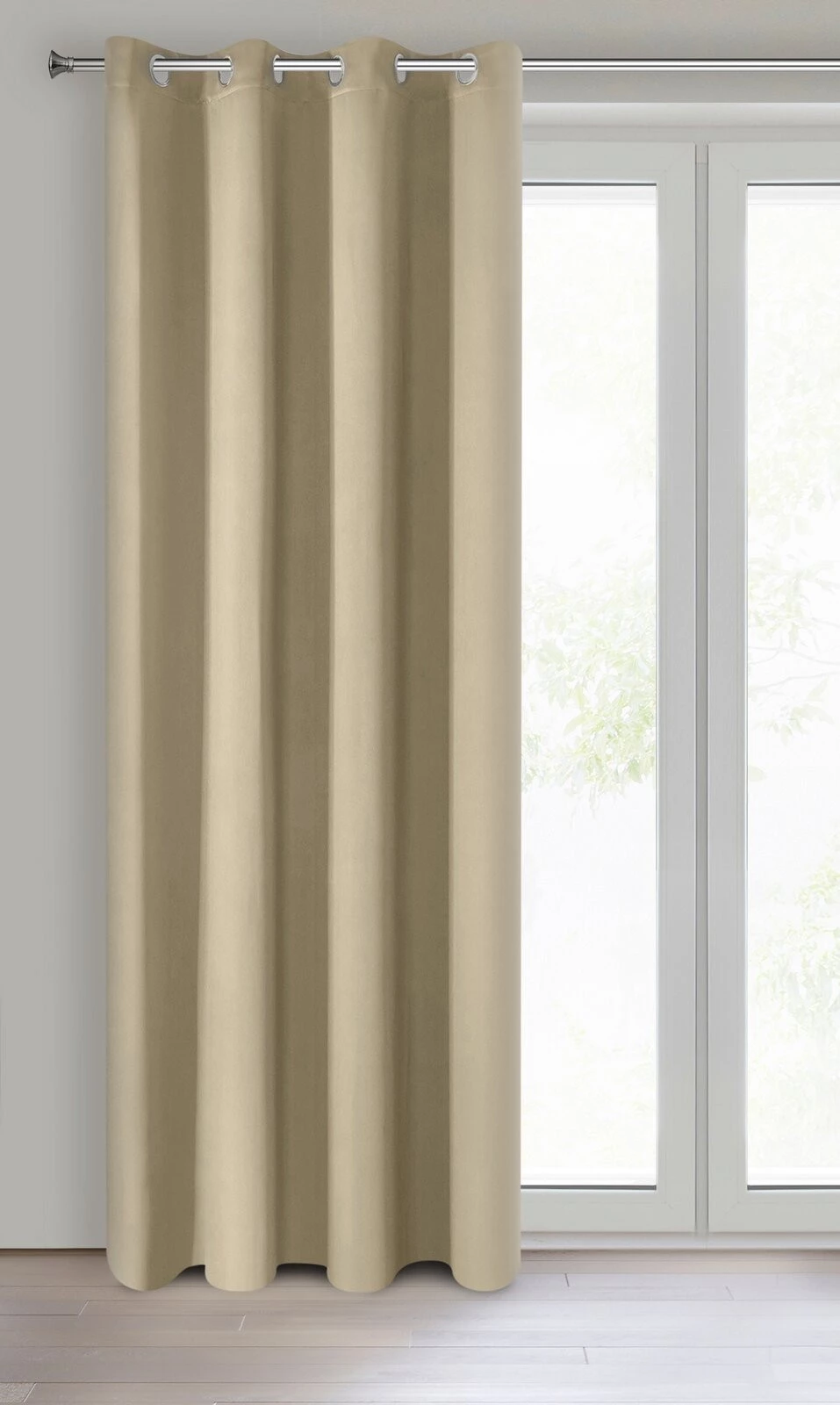 Zasłona zaciemniająca z mięsistej tkaniny typu blackout. Doskonała izolacja cieplna i akustyczna wnetrza. Jednokolorowa zasłona o minimalistycznym designie. szerokość: 140 cm, długość: 250 cm, kolor: beżowy, Gramatura: 210 GSM, Skład: 100% poliester