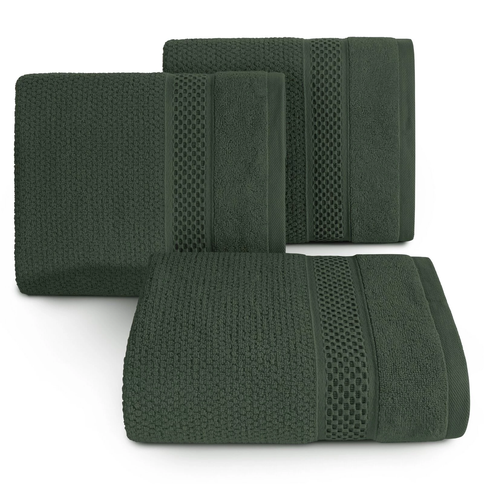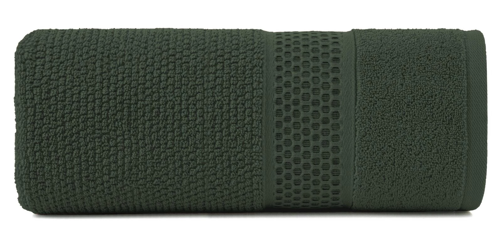 Ręcznik bawełniany z wytłaczaną bordiurą szerokość: 30 cm, długość: 50 cm, kolor: zielony, Gramatura: 500 GSM, Skład: 100% bawełna; część ozdobna: 96% bawełna, 4% poliester