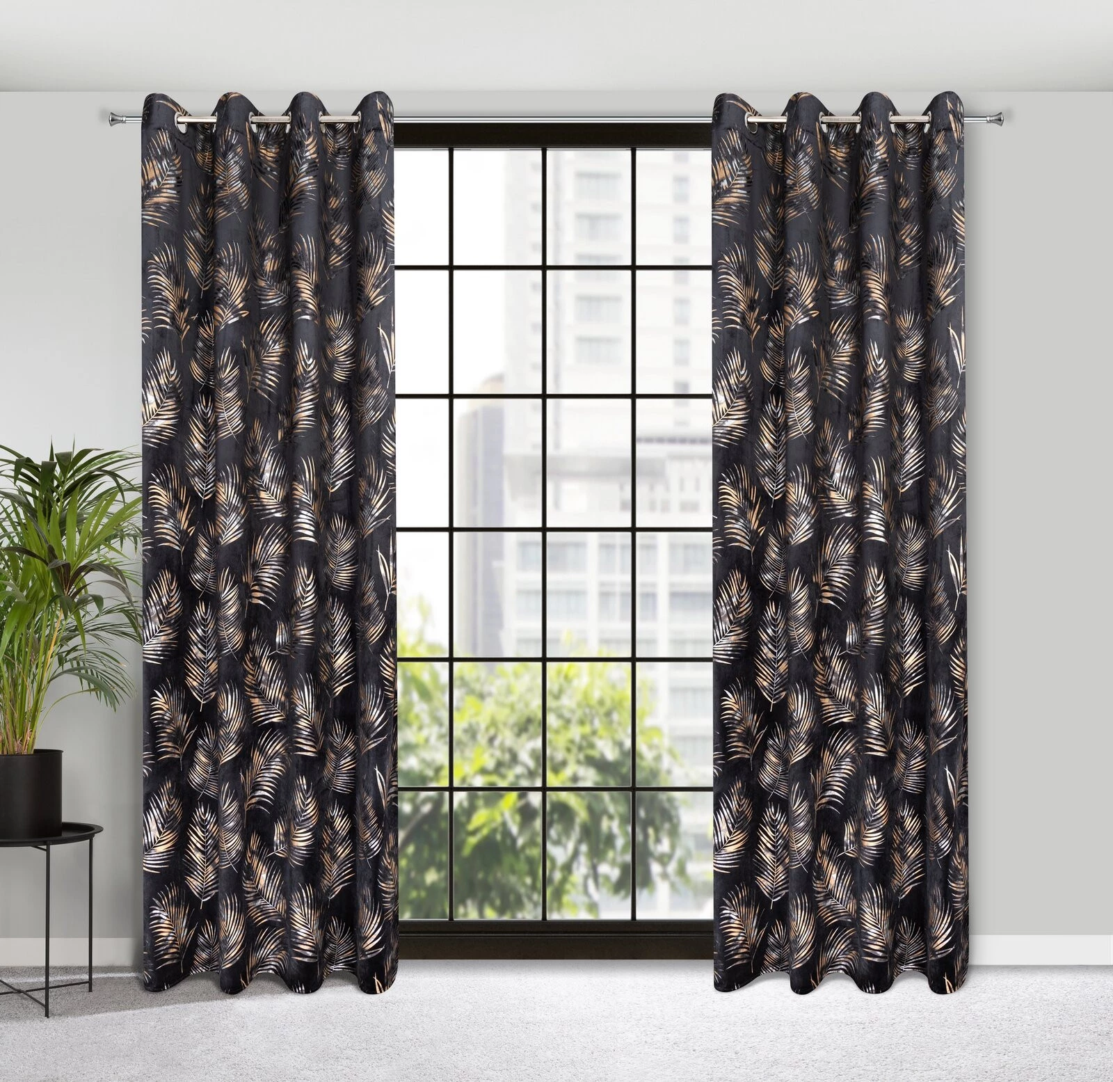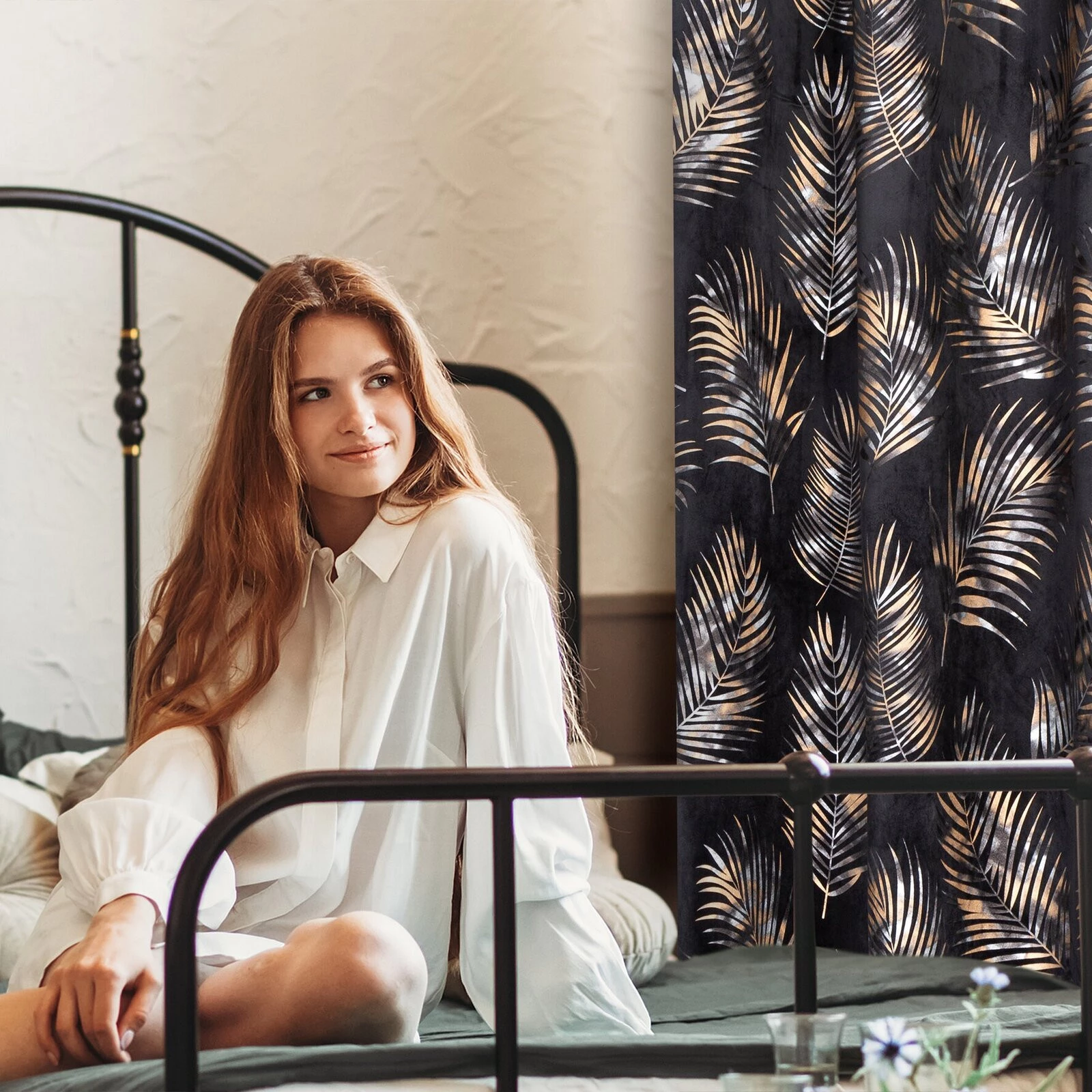 - Zasłona welwetowa z cieniowanym błyszczącym nadrukiem szerokość: 140 cm, długość: 250 cm, kolor: czarny, Gramatura: 200 GSM, Skład: 100% poliester