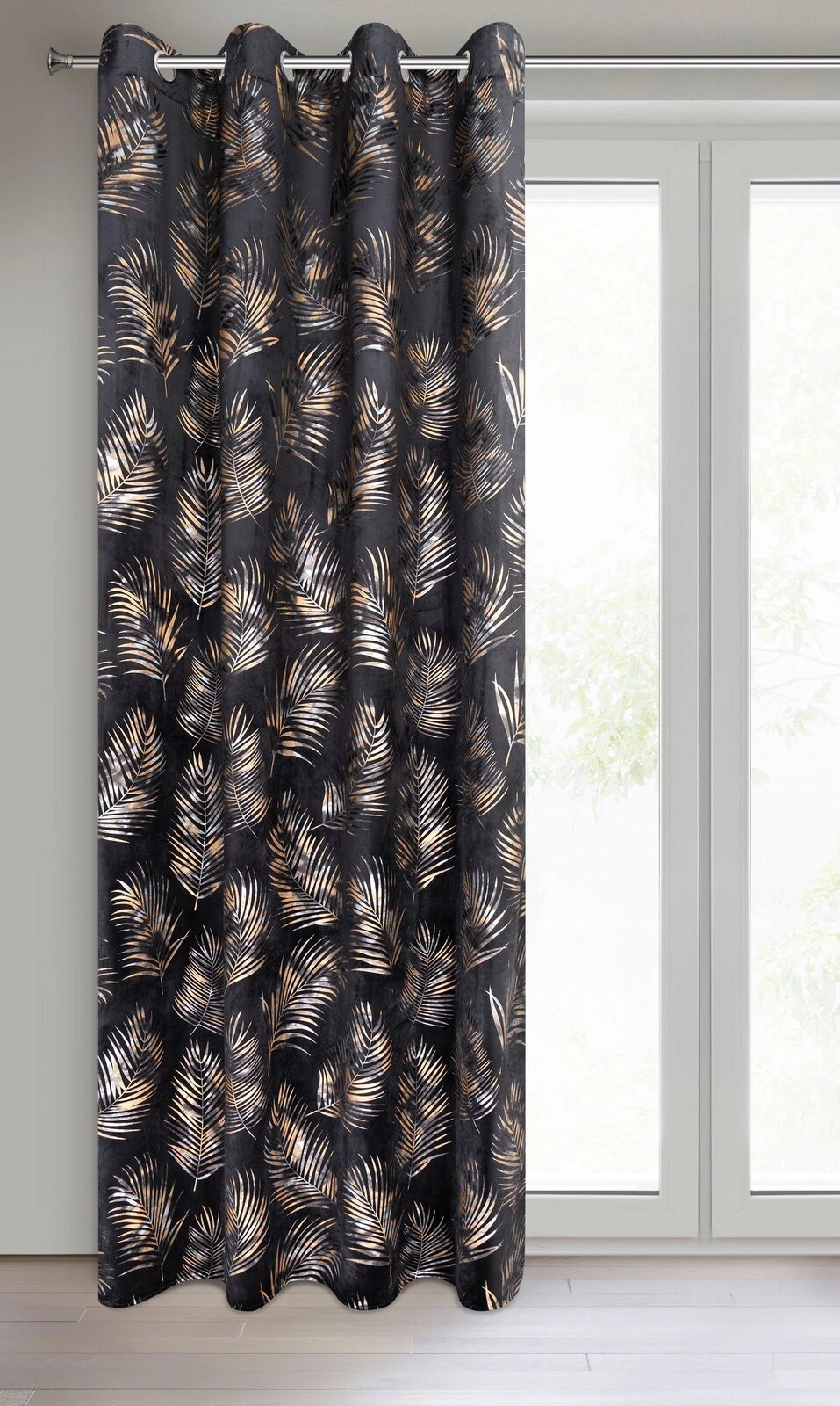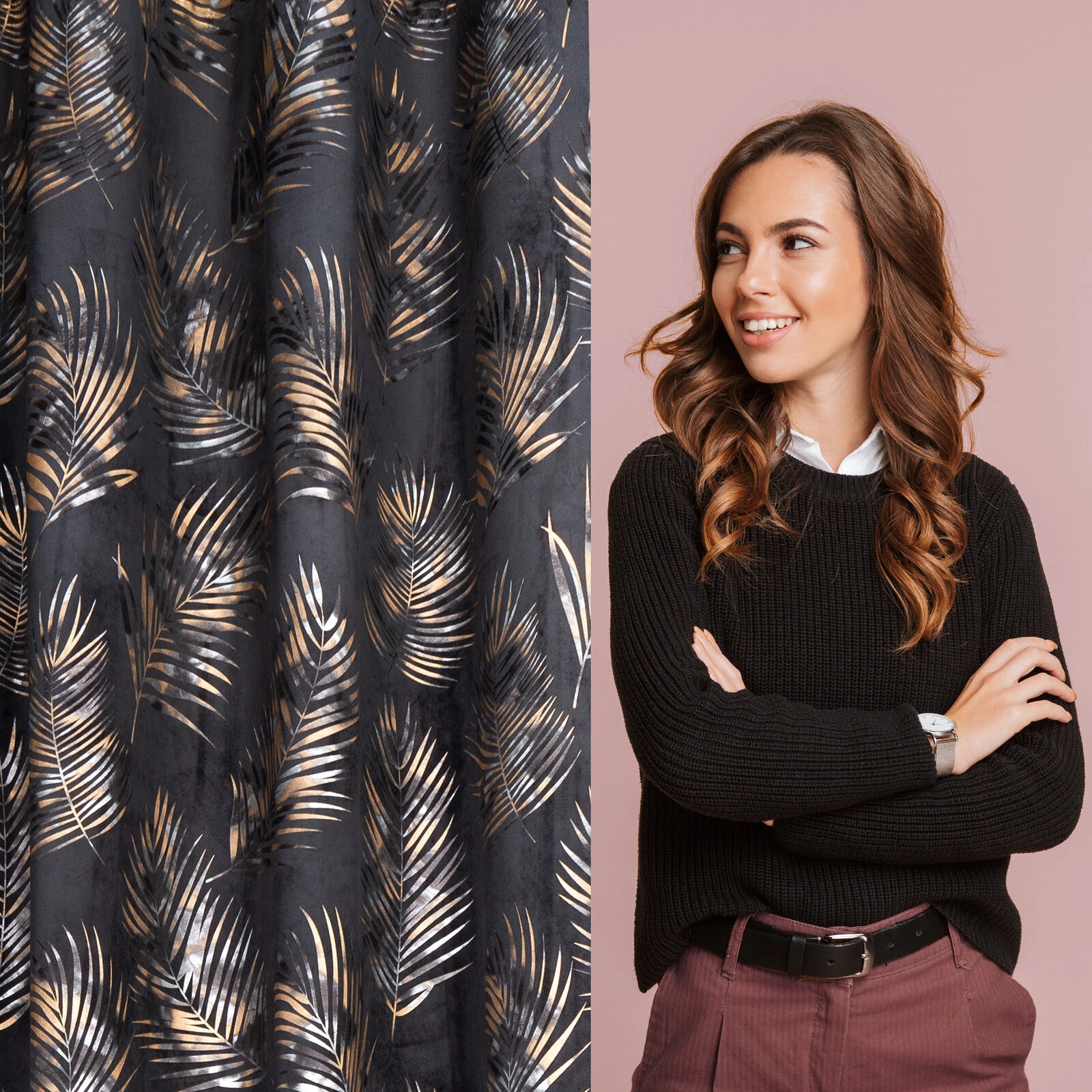 Zasłona welwetowa z cieniowanym błyszczącym nadrukiem szerokość: 140 cm, długość: 250 cm, kolor: czarny, Gramatura: 200 GSM, Skład: 100% poliester
