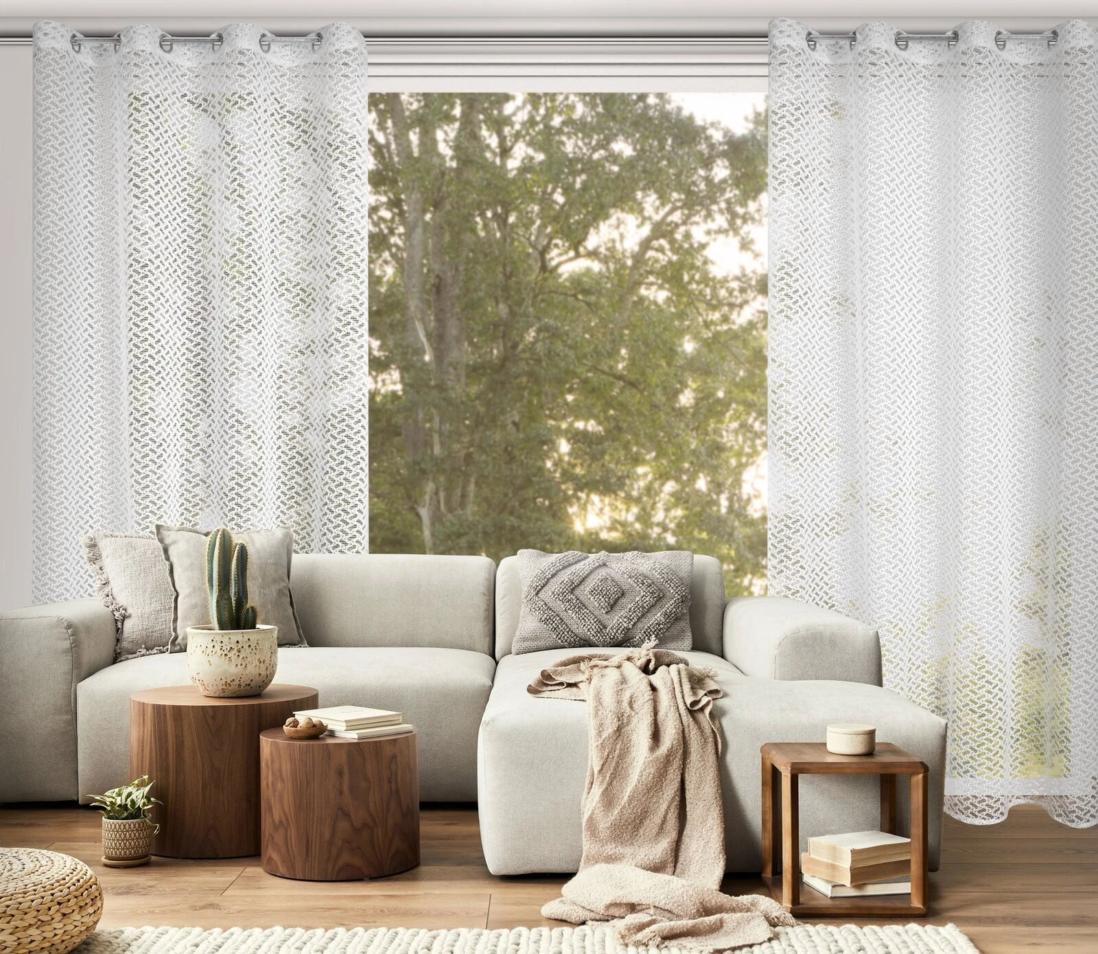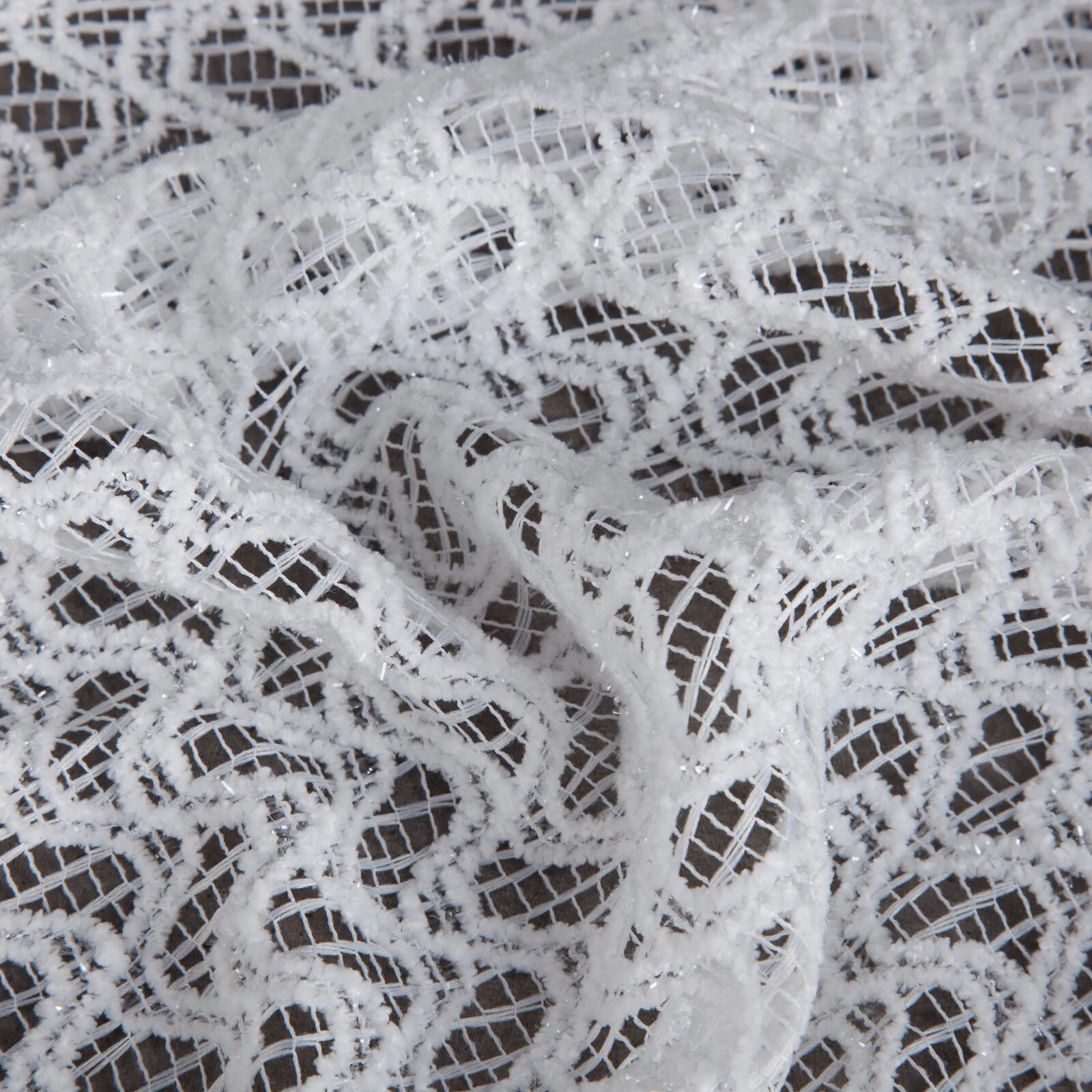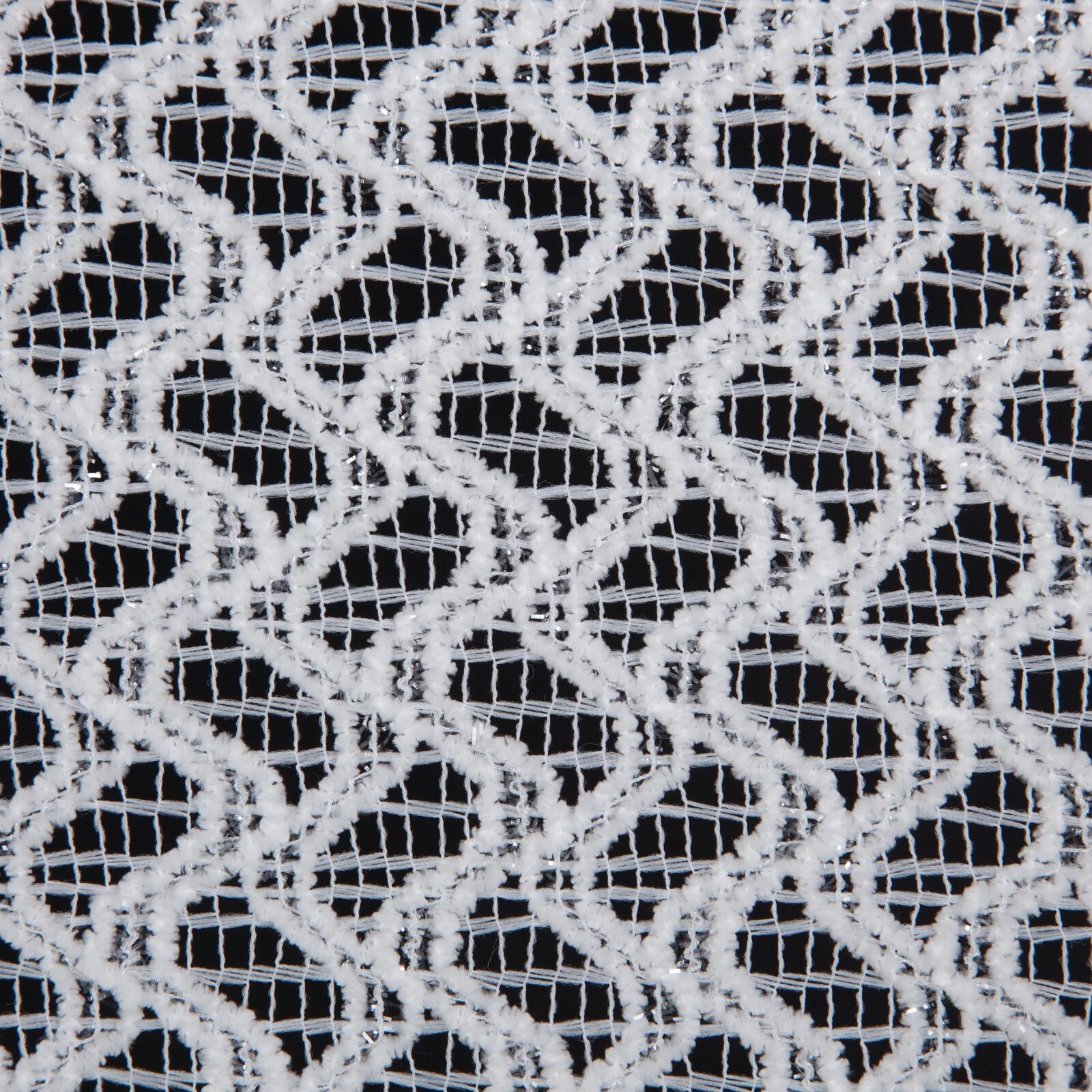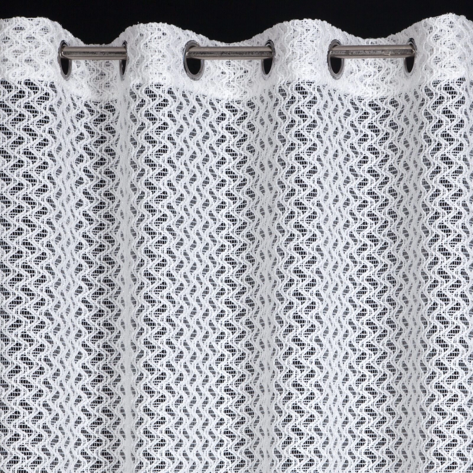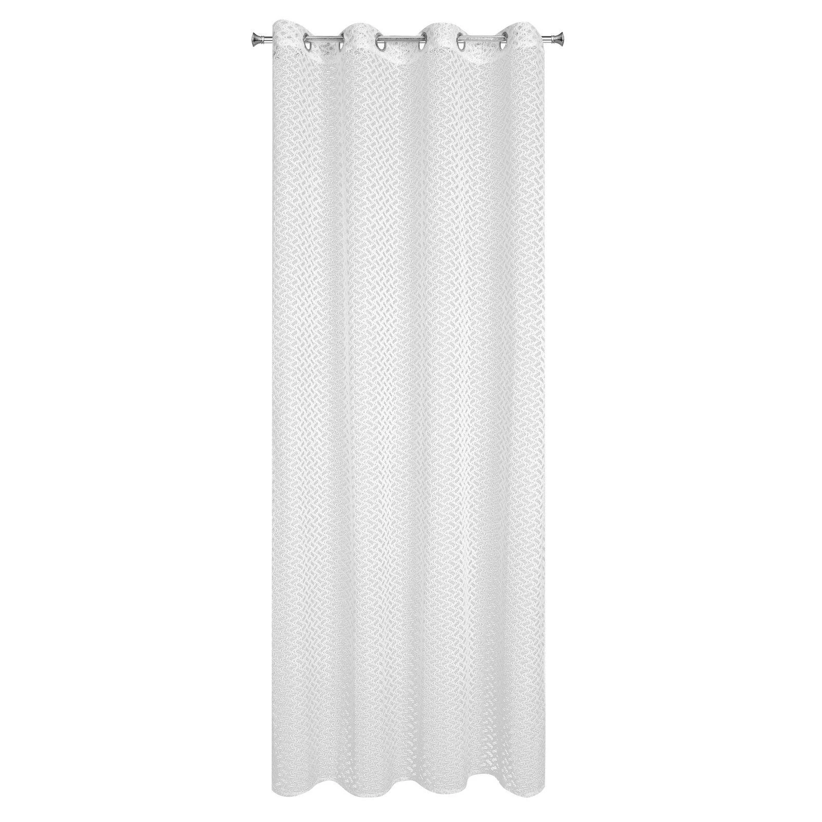 - Firana gotowa o strukturze siatki z błyszcząca nicią szerokość: 140 cm, długość: 250 cm, kolor: biały, Gramatura: 150 GSM, Skład: 100% poliester