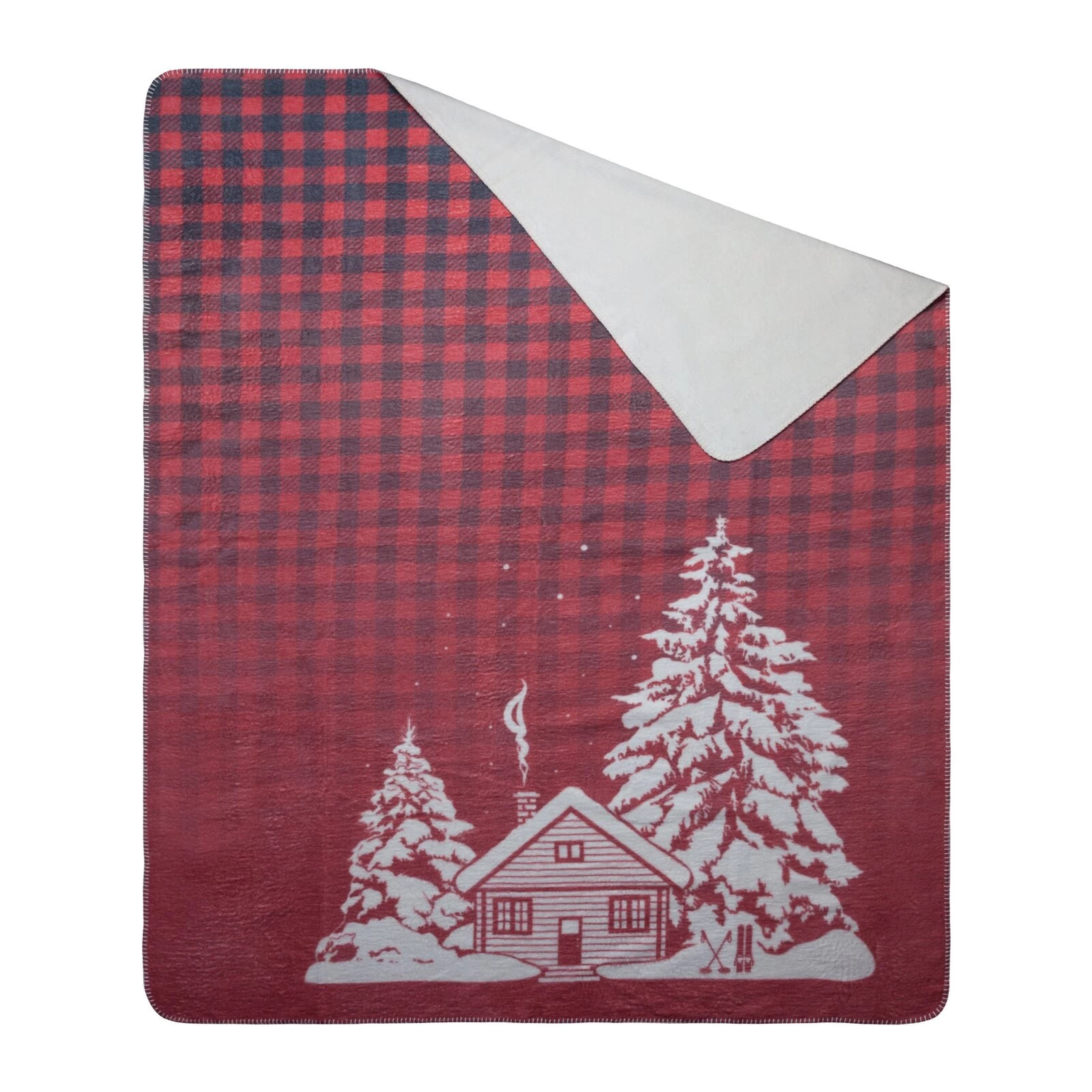 Wyjątkowo miękki w dotyku koc ze wzorem świątecznym szerokość: 200 cm, długość: 220 cm, kolor: czerwony, Gramatura: 470 GSM GSM, Skład: 60% bawełna, 40% akryl
