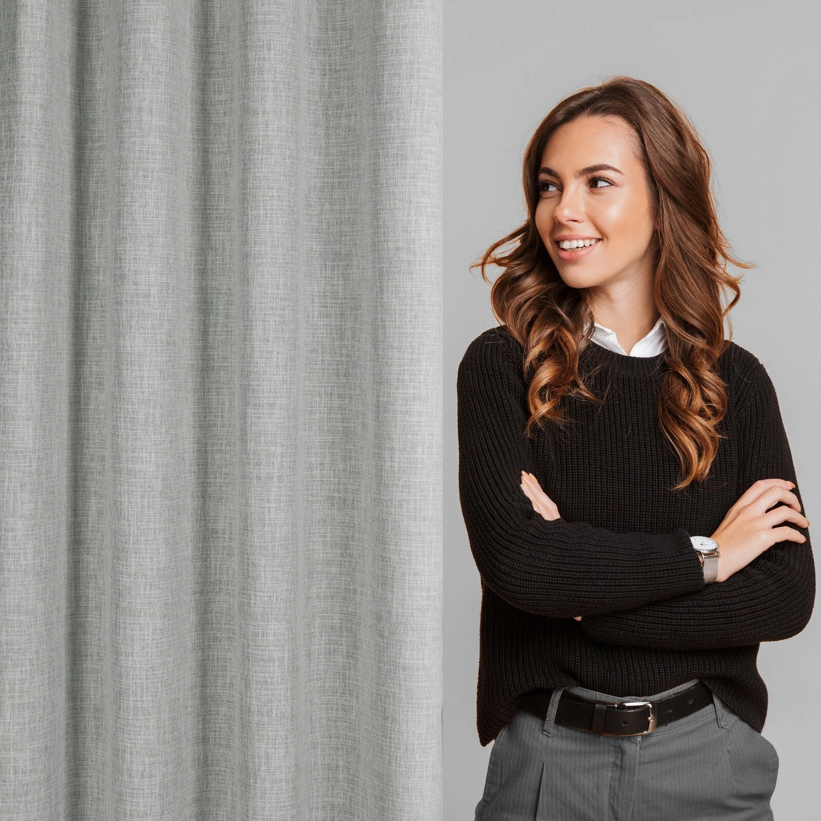 - Zasłona gotowa w stylu eko szerokość: 140 cm, długość: 250 cm, kolor: szary, Gramatura: 320 GSM, Skład: 100% poliester