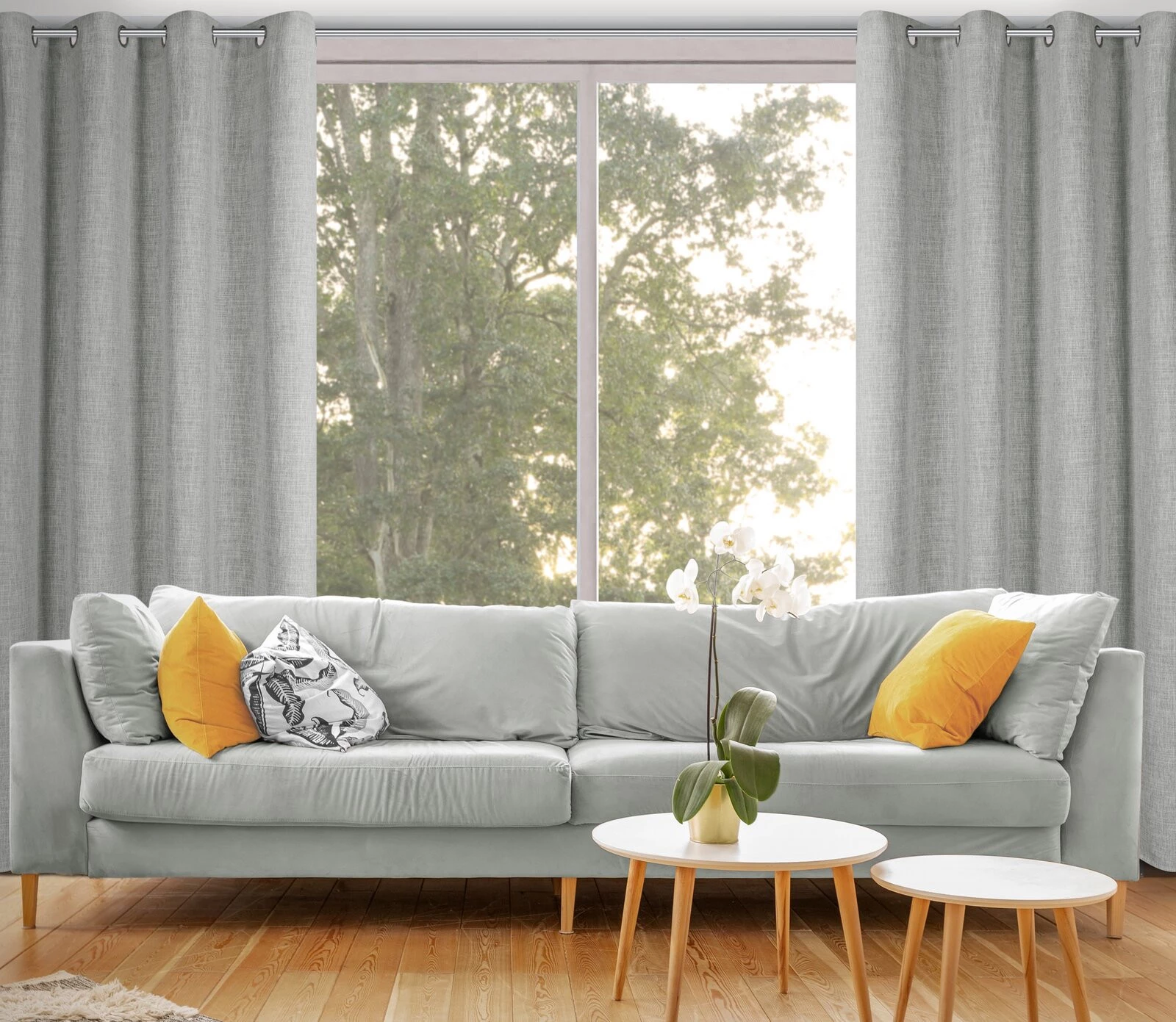 Zasłona gotowa w stylu eko szerokość: 140 cm, długość: 250 cm, kolor: szary, Gramatura: 320 GSM, Skład: 100% poliester