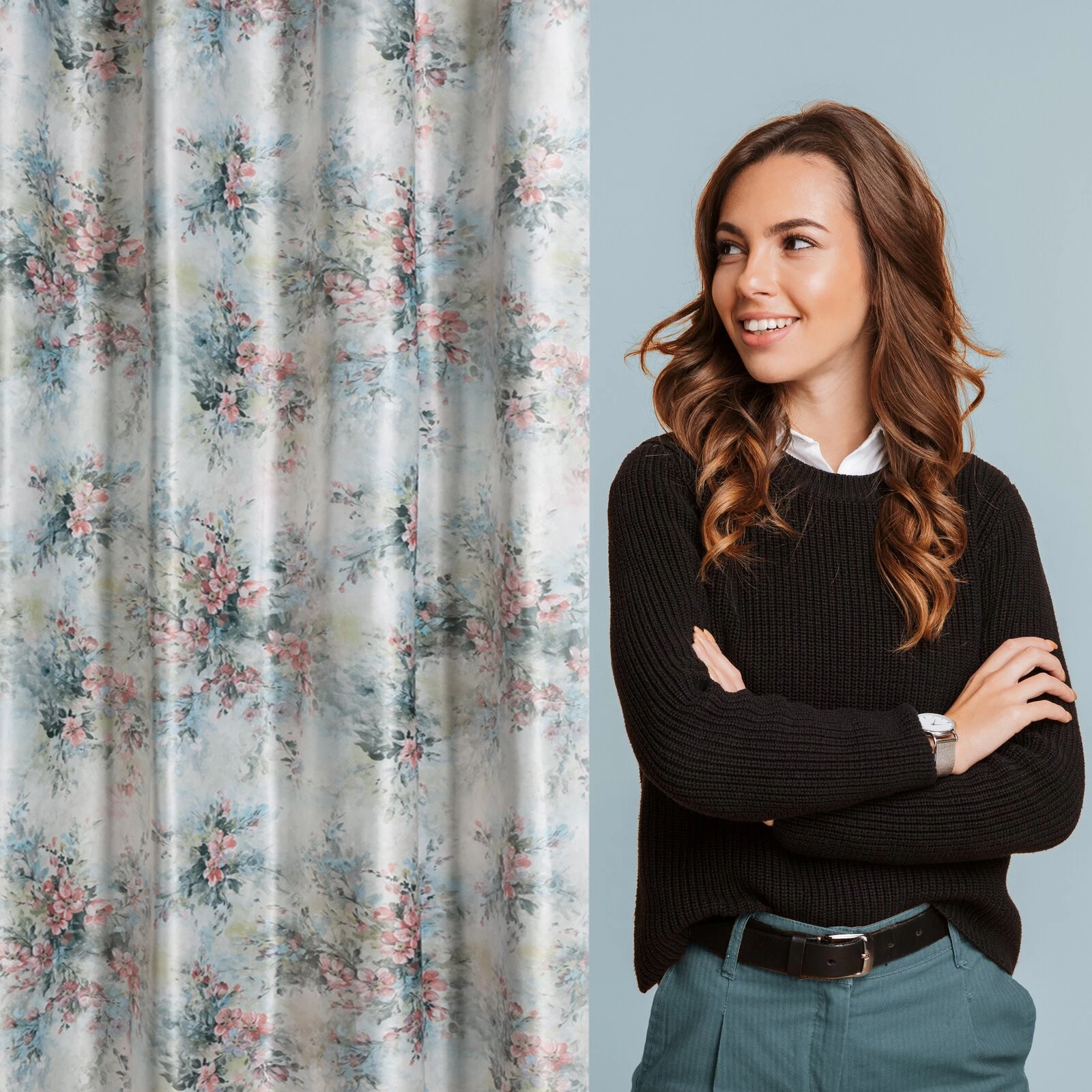 - Zasłona welwetowa z kwiatowym nadrukiem szerokość: 140 cm, długość: 250 cm, kolor: kremowy, Gramatura: 200 GSM, Skład: 100% poliester