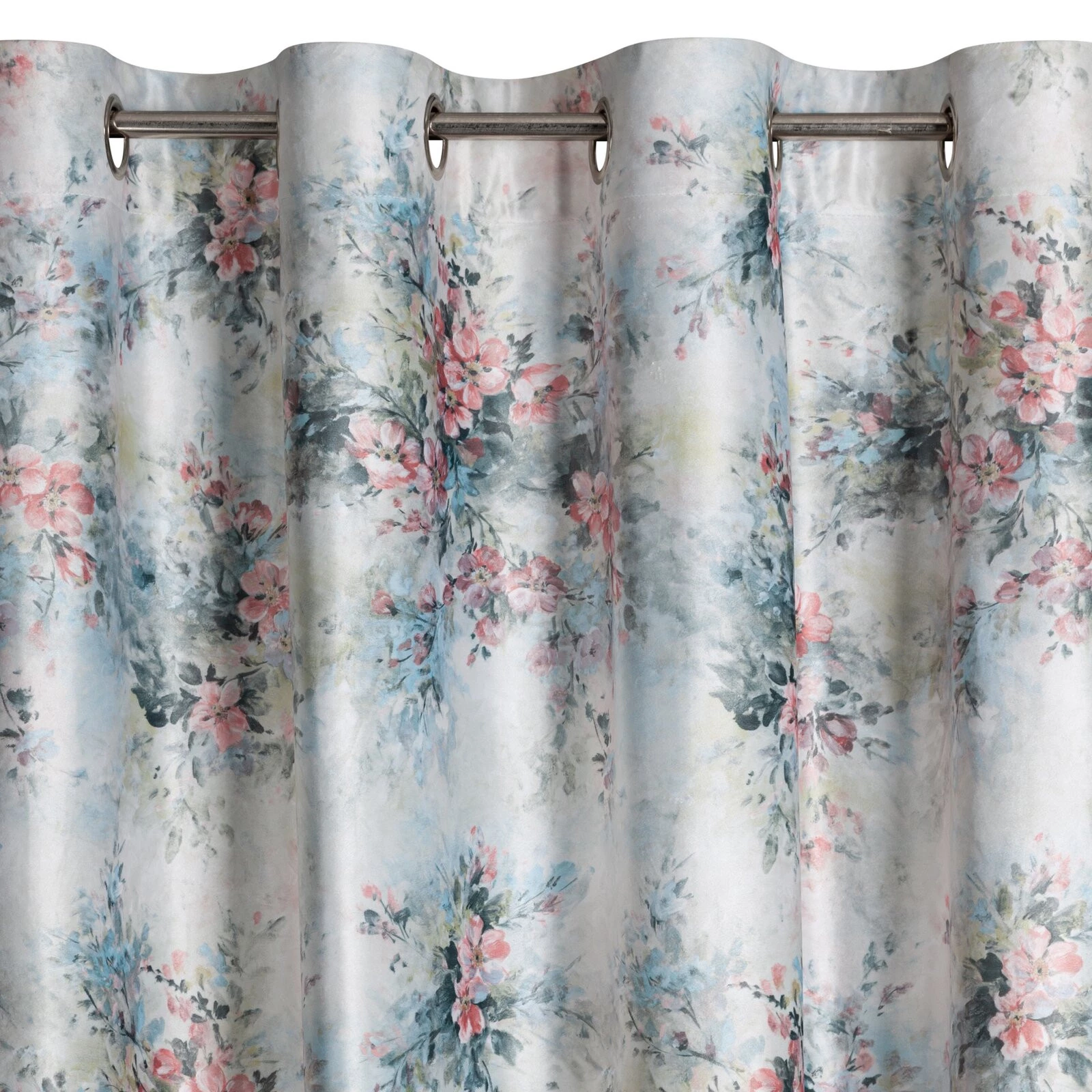 Zasłona welwetowa z kwiatowym nadrukiem szerokość: 140 cm, długość: 250 cm, kolor: kremowy, Gramatura: 200 GSM, Skład: 100% poliester