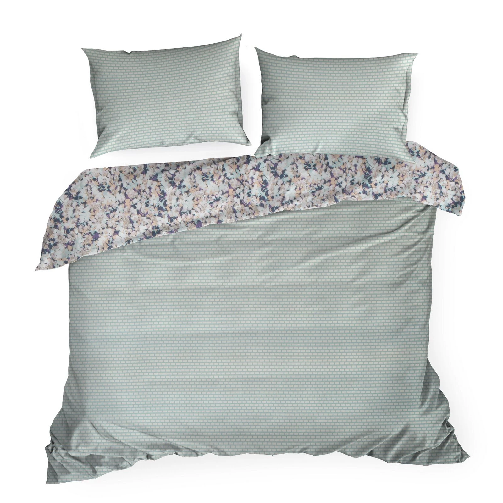 Komplet pościeli z makosatyny bawełnianej z nadrukiem szerokość: 160 cm, długość: 200 cm, kolor: miętowy, Gramatura: 125 GSM, Skład: makosatyna, 100% bawełna