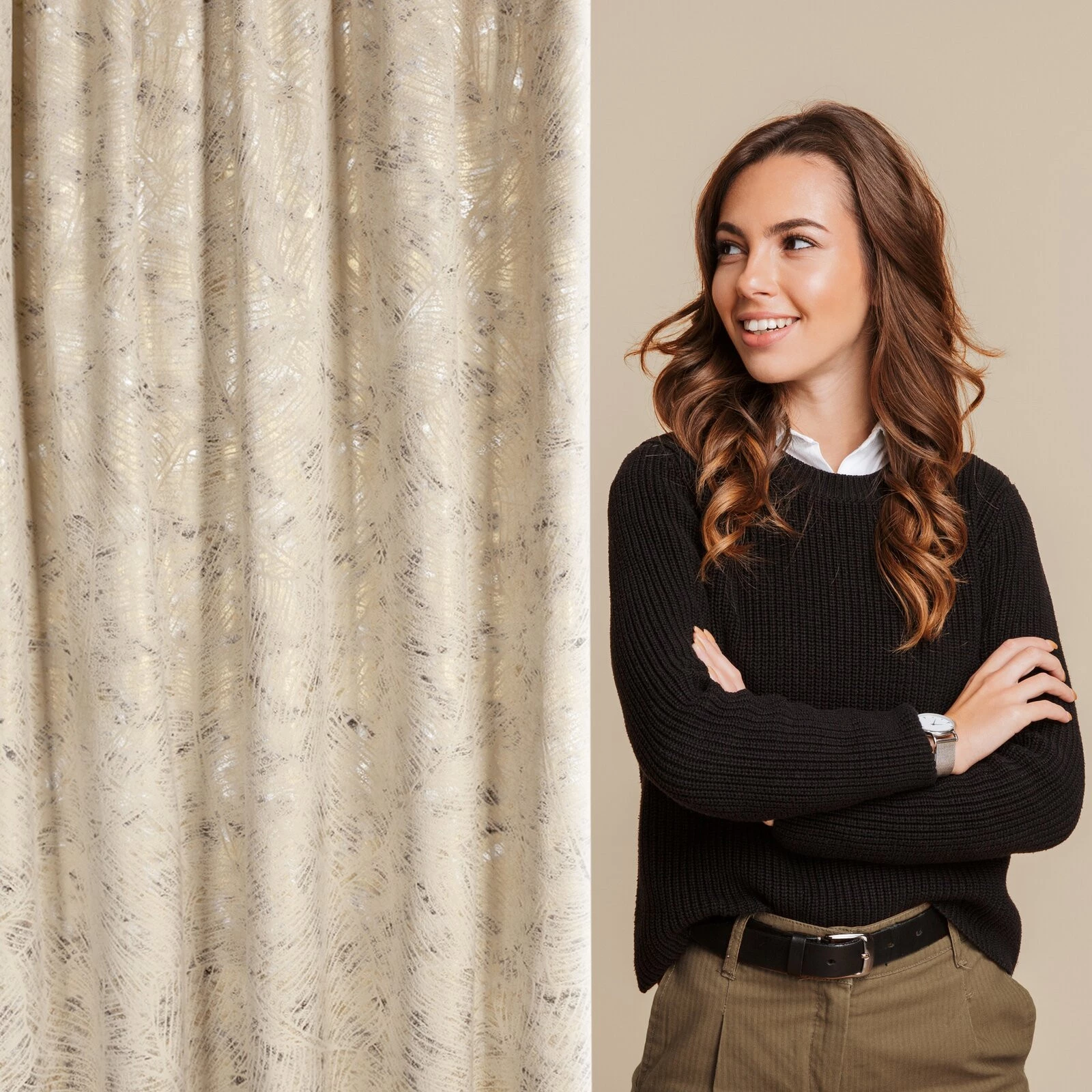 - Zasłona welwetowa z cieniowanym błyszczącym nadrukiem szerokość: 135 cm, długość: 270 cm, kolor: beżowy, Gramatura: 200 GSM, Skład: 100% poliester