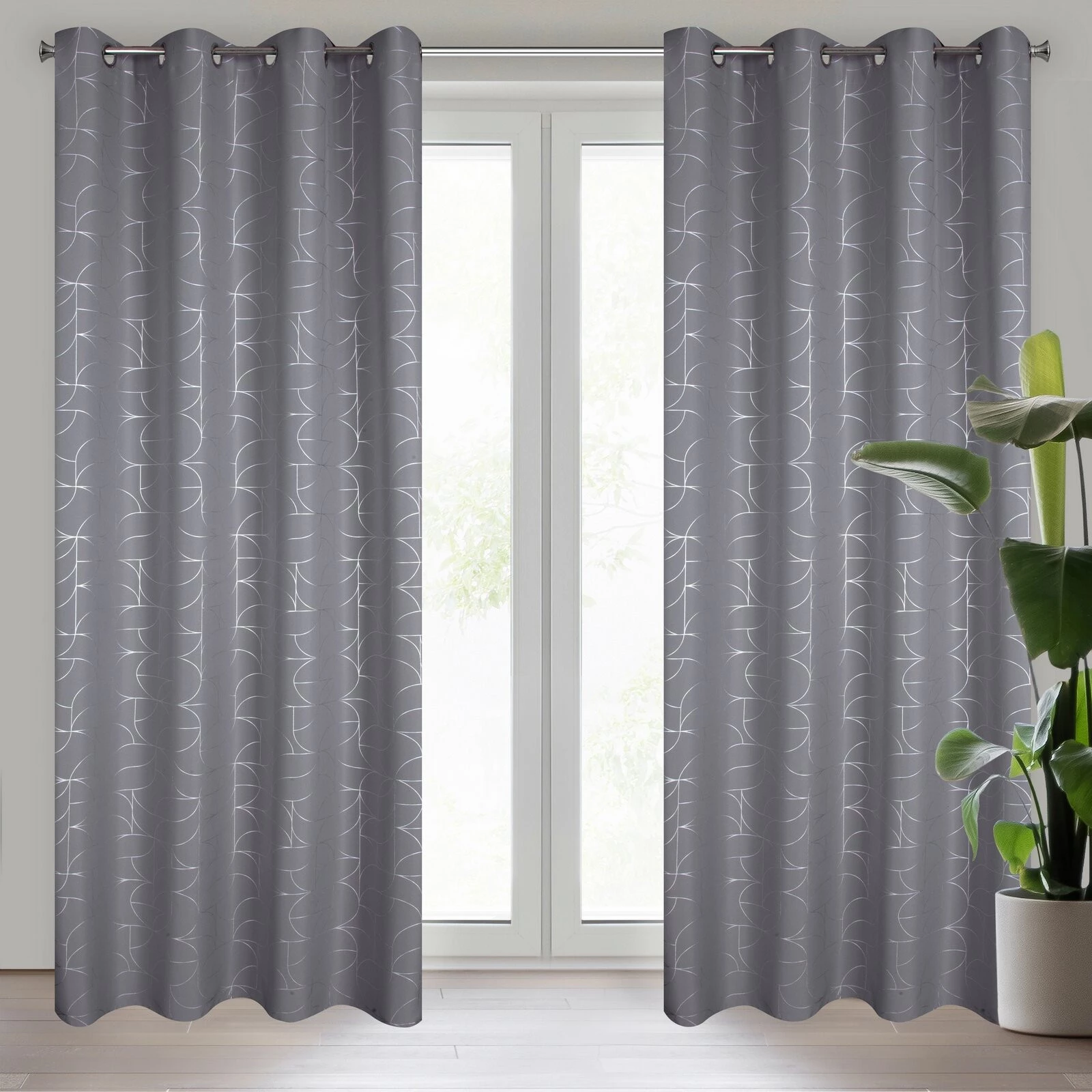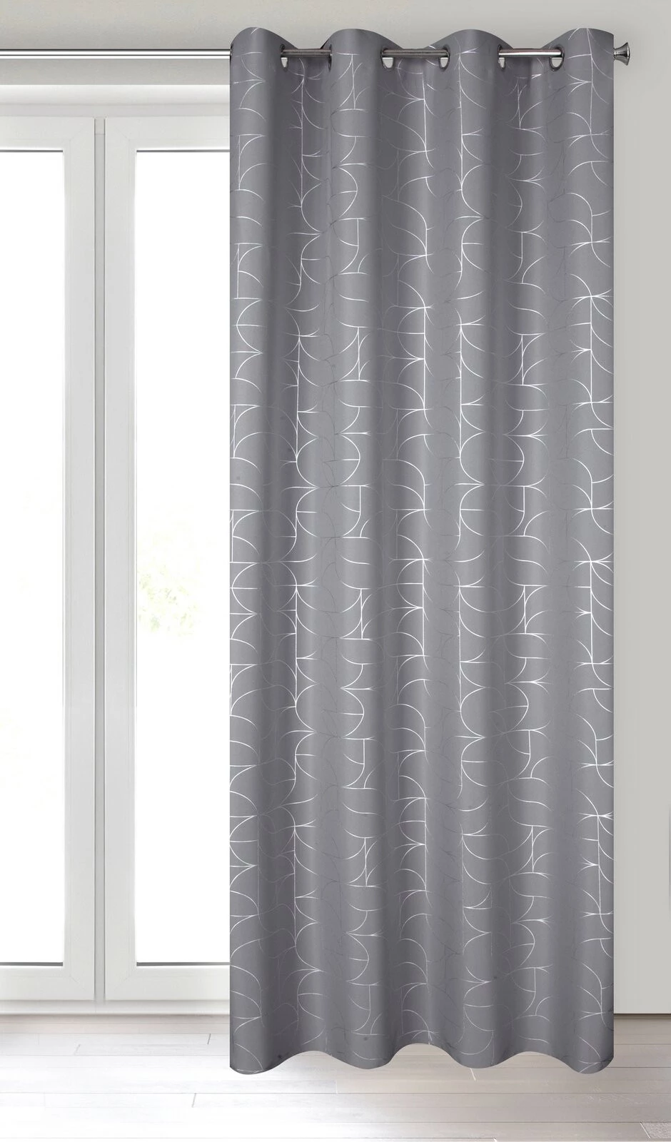 - Zasłona gotowa z błyszczącym nadrukiem geometrycznym szerokość: 140 cm, długość: 250 cm, kolor: srebrny, Gramatura: 140 GSM, Skład: 100% poliester