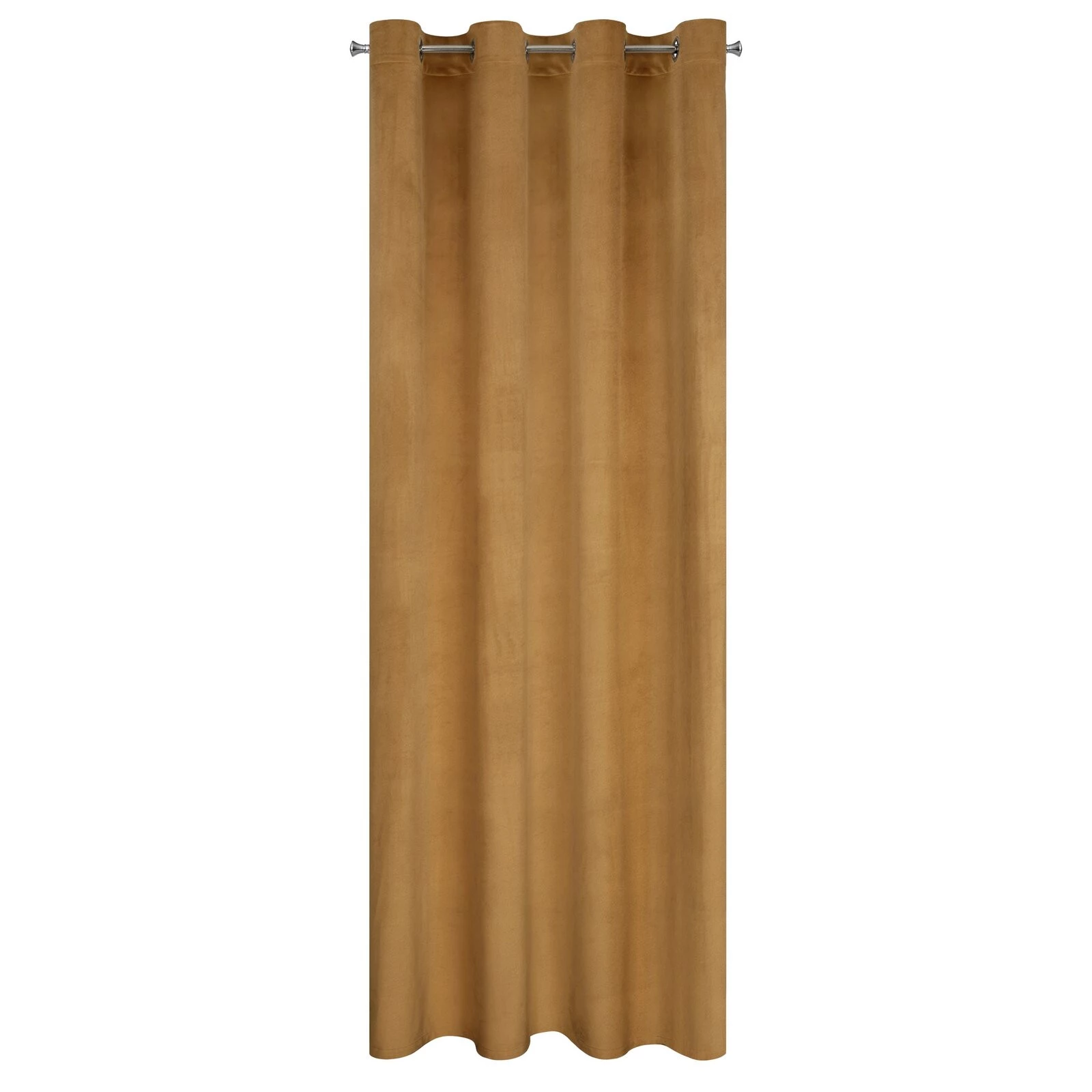 Miękka zasłona z welwetu o matowym wykończeniu. Mięsista tkanina o średnich właściwościach zaciemniających nadaje wnętrzu eleganckiego charakteru. szerokość: 140 cm, długość: 250 cm, kolor: miodowy, Gramatura: 200 GSM, Skład: 100% poliester