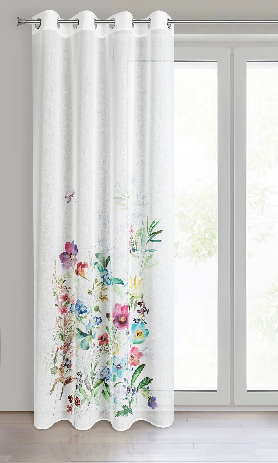 Zasłona z etaminy z nadrukiem szerokość: 140 cm, długość: 250 cm, kolor: biały, Gramatura: 80 GSM, Skład: 100% poliester