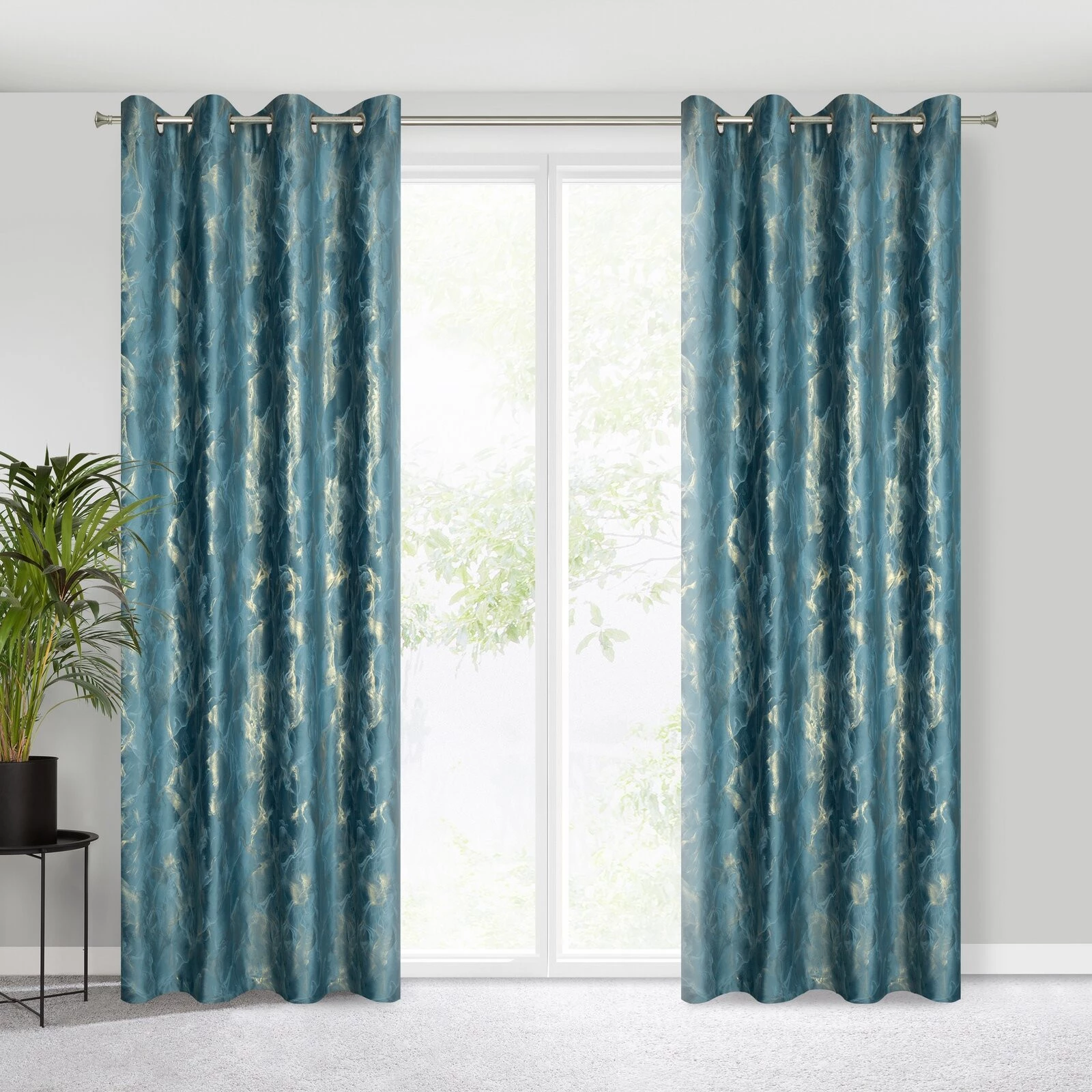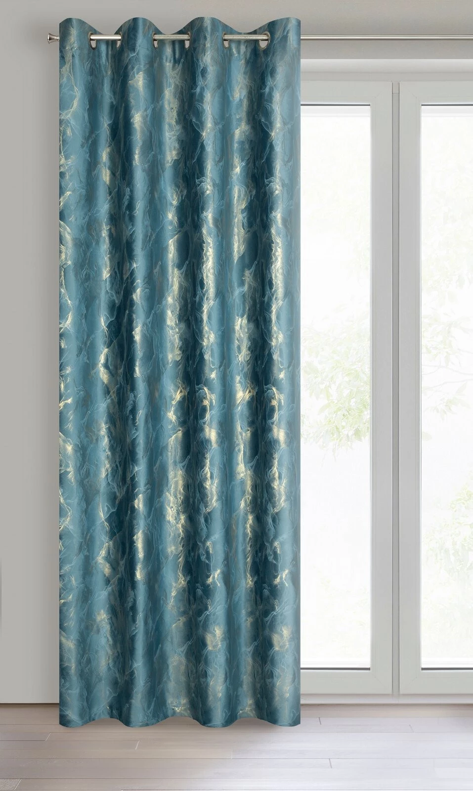 - Zasłona welwetowa z metalicznym nadrukiem szerokość: 140 cm, długość: 250 cm, kolor: granatowy, Gramatura: 200 GSM, Skład: 100% poliester