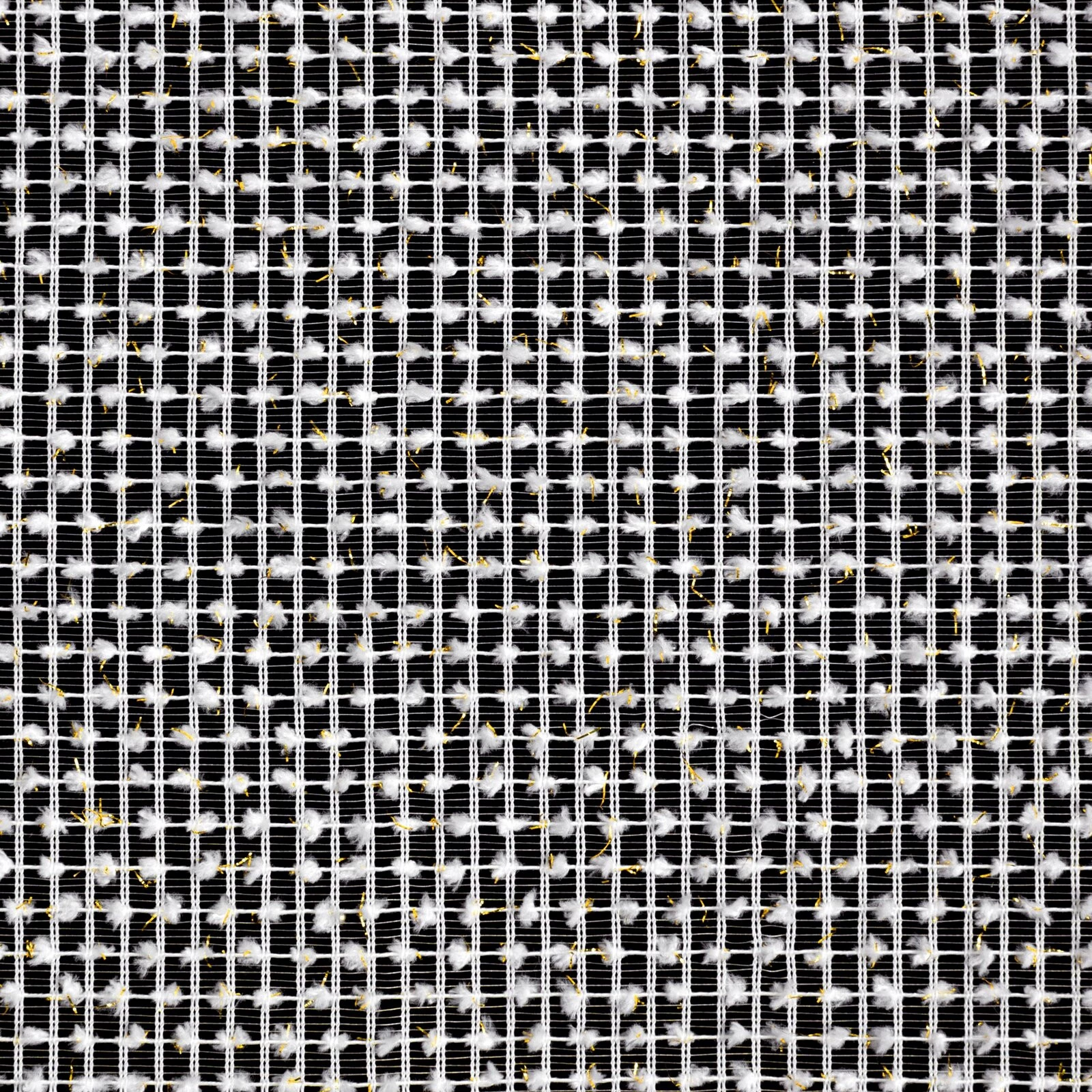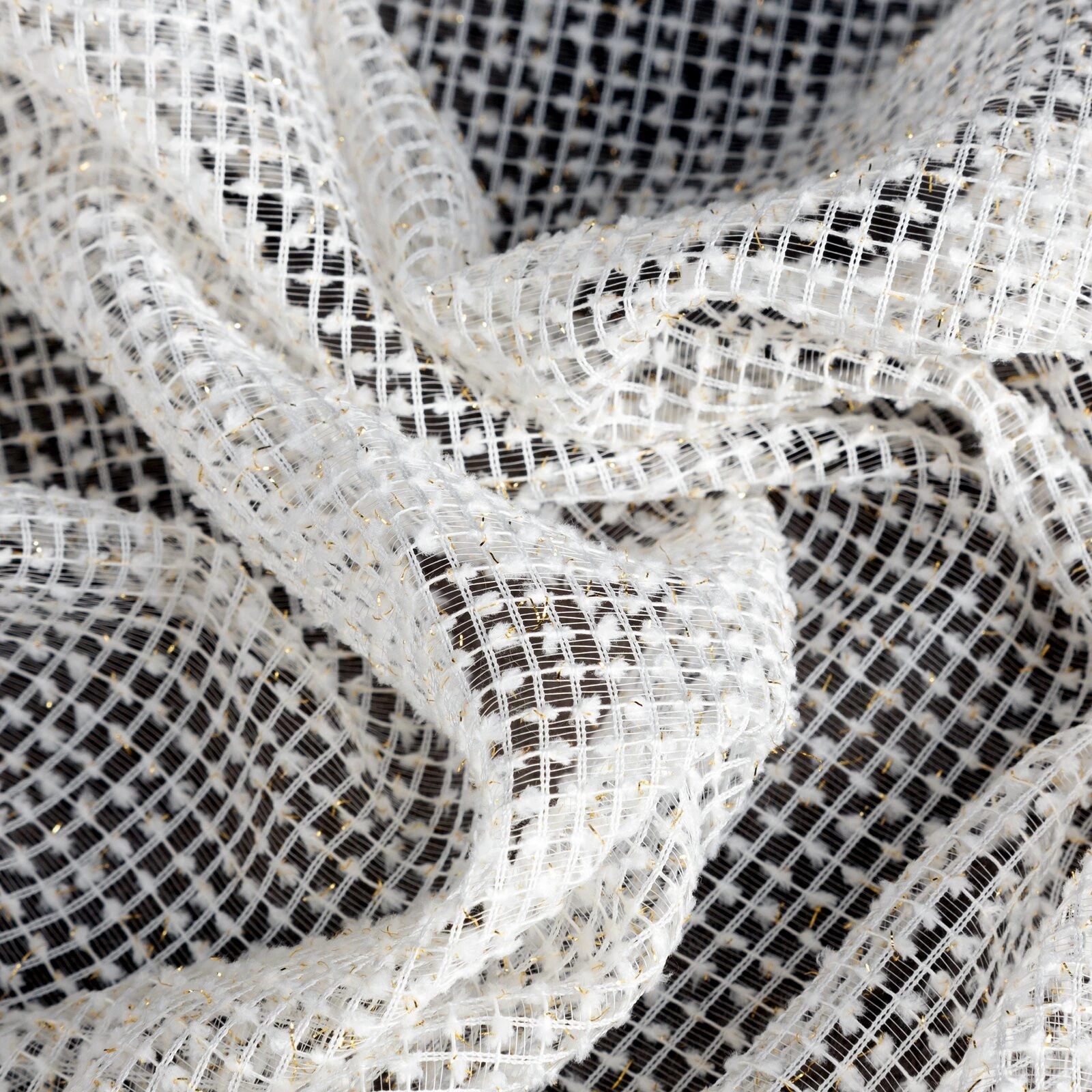 - Firana o strukturze siatki połaczonej z buklą, zdobiona złotą nicią szerokość: 140 cm, długość: 260 cm, kolor: biały, Gramatura: 90 GSM, Skład: 100% poliester