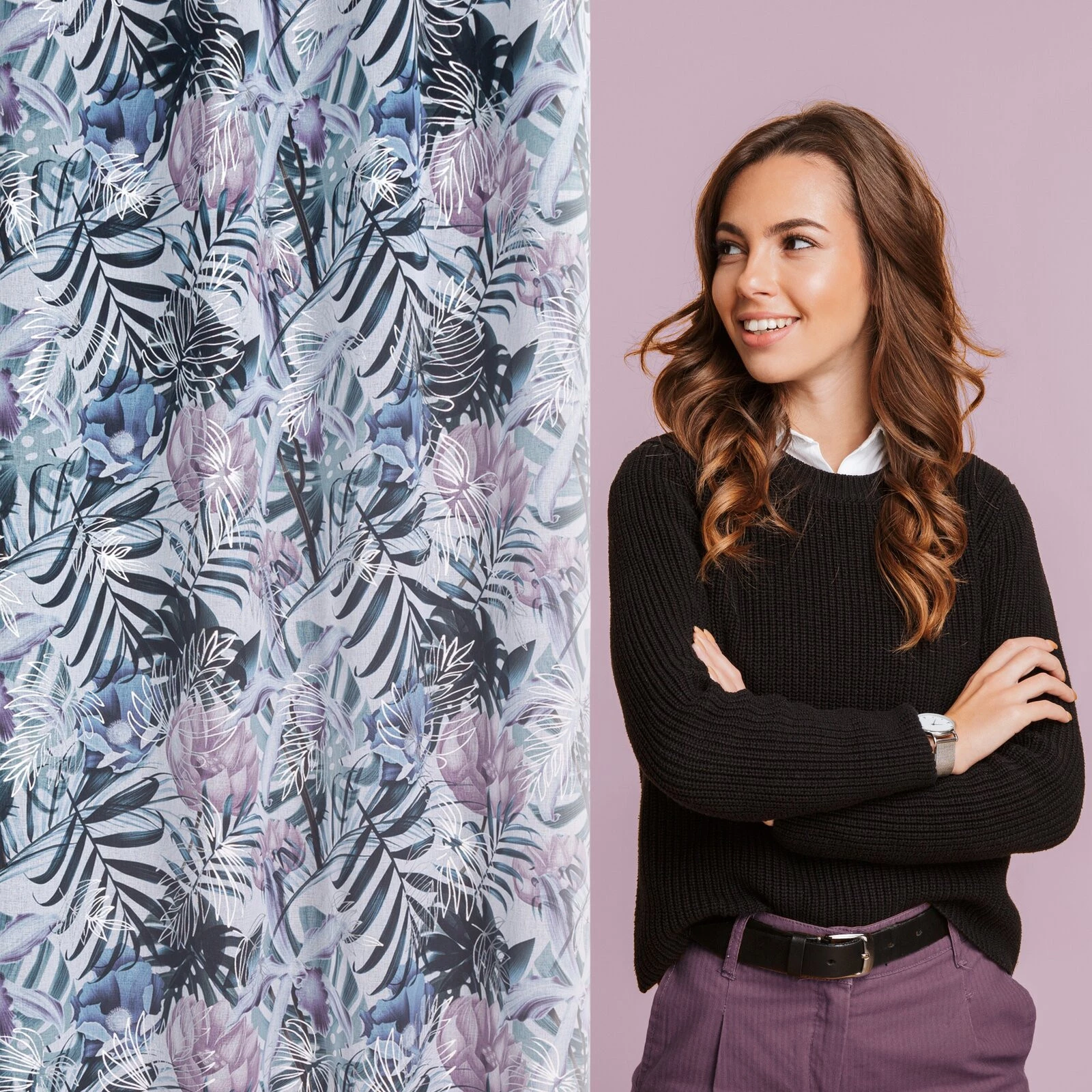 - Zasłona z motywami botanicznymi z błyszczącym nadrukiem szerokość: 140 cm, długość: 250 cm, kolor: biały, Gramatura: 80 GSM, Skład: 100% poliester