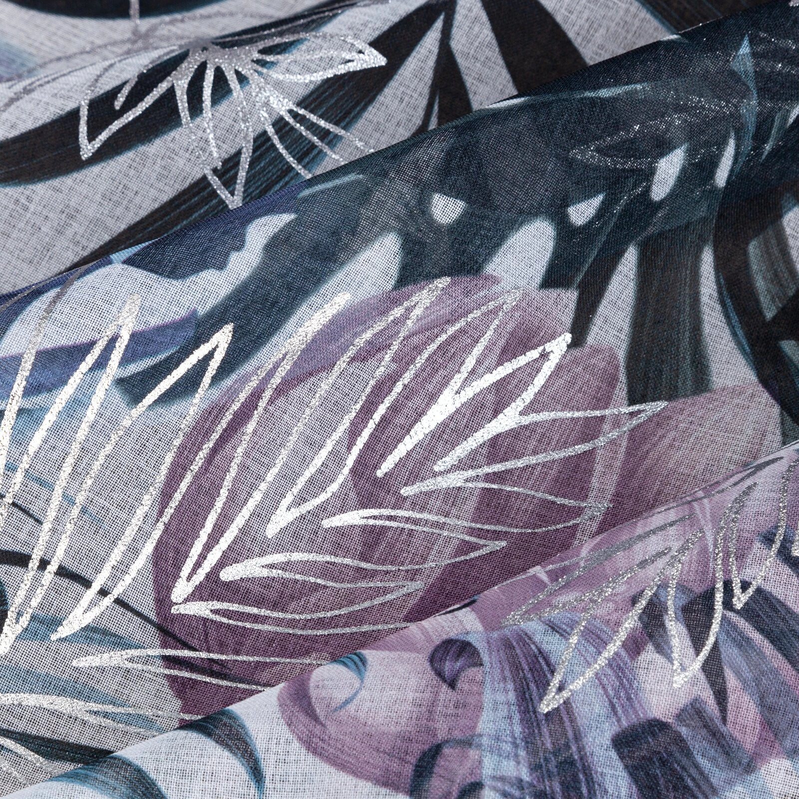 Zasłona z motywami botanicznymi z błyszczącym nadrukiem szerokość: 140 cm, długość: 250 cm, kolor: biały, Gramatura: 80 GSM, Skład: 100% poliester