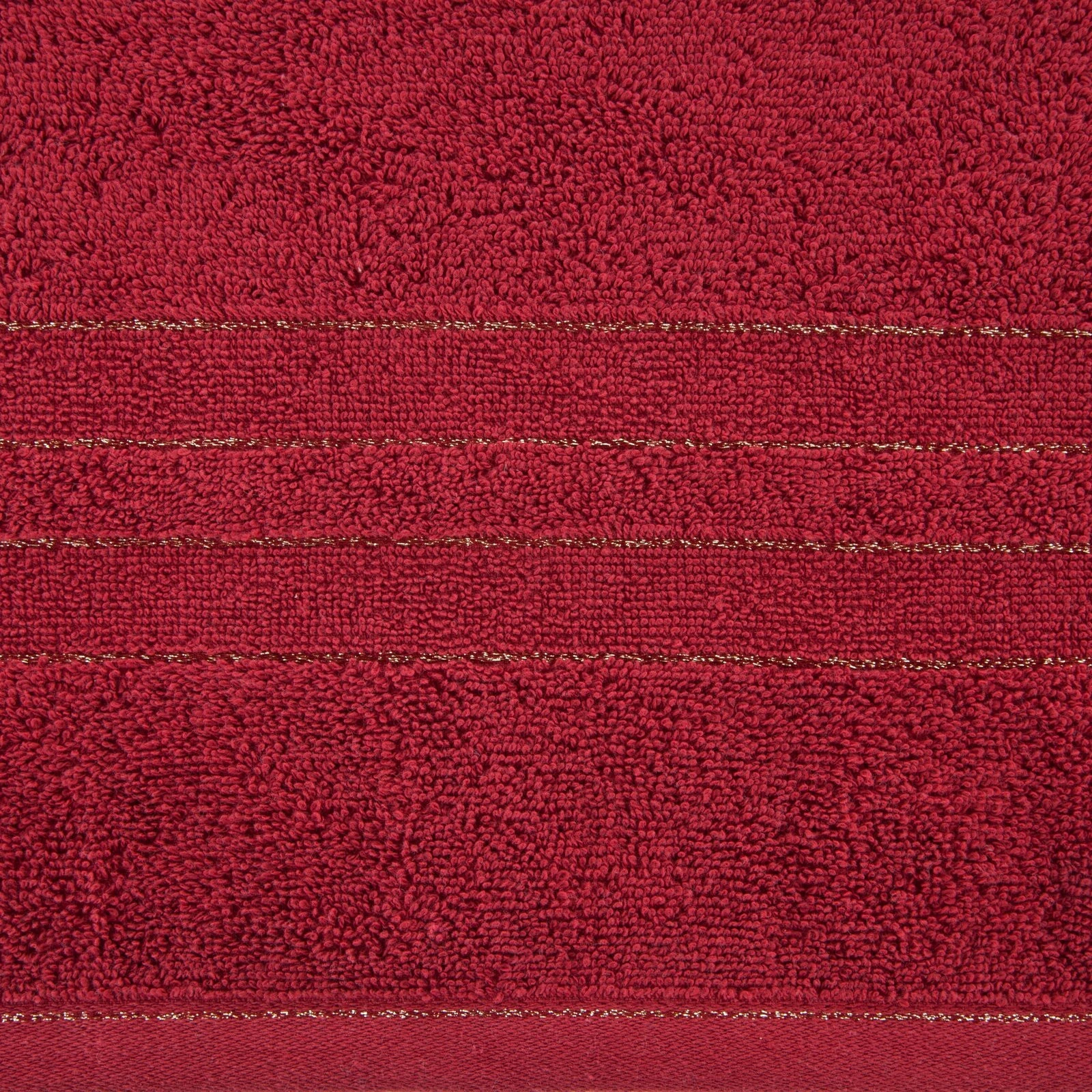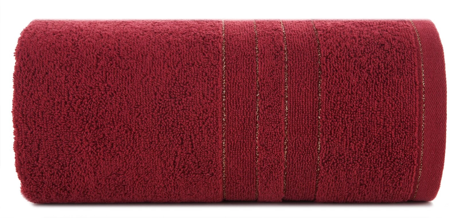 Ręcznik bawełniany z bordiurą zdobioną błyszczącą nicią szerokość: 30 cm, długość: 50 cm, kolor: bordowy, Gramatura: 500 GSM, Skład: 100% bawełna; część ozdobna: 95% bawełna, 5% poliester