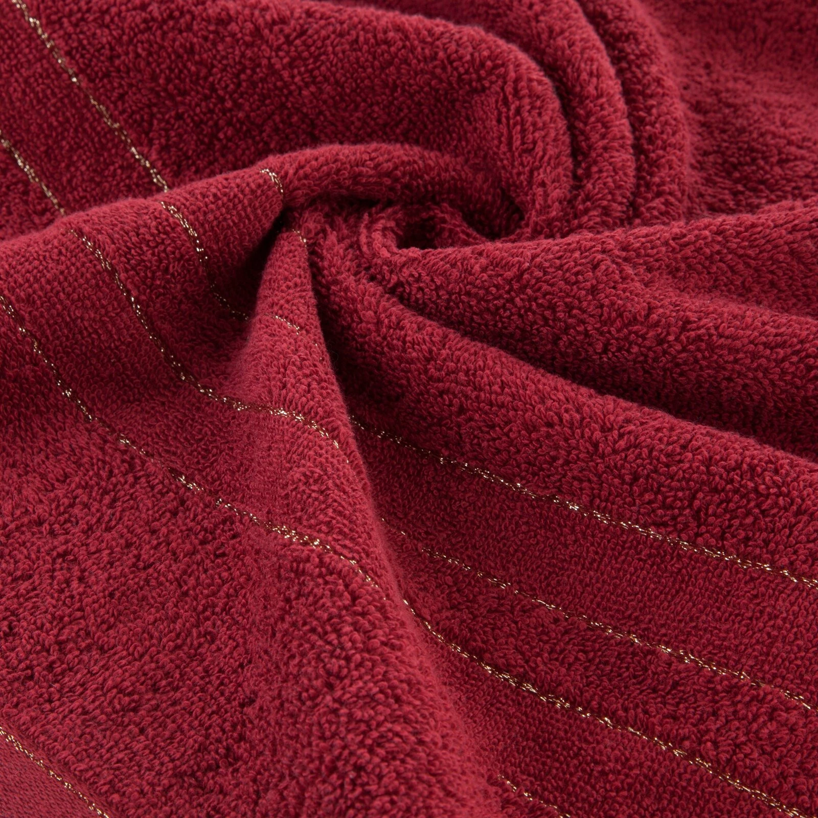 Ręcznik bawełniany z bordiurą zdobioną błyszczącą nicią szerokość: 50 cm, długość: 90 cm, kolor: bordowy, Gramatura: 500 GSM, Skład: 100% bawełna; część ozdobna: 95% bawełna, 5% poliester