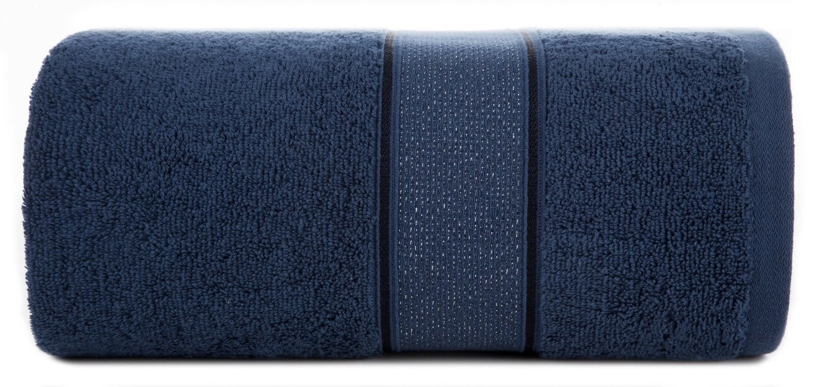 Ręcznik bawełniany z błyszczącą nicią szerokość: 30 cm, długość: 50 cm, kolor: granatowy, Gramatura: 500 GSM, Skład: 100% bawełna; część ozdobna: 95% bawełna, 5% poliester
