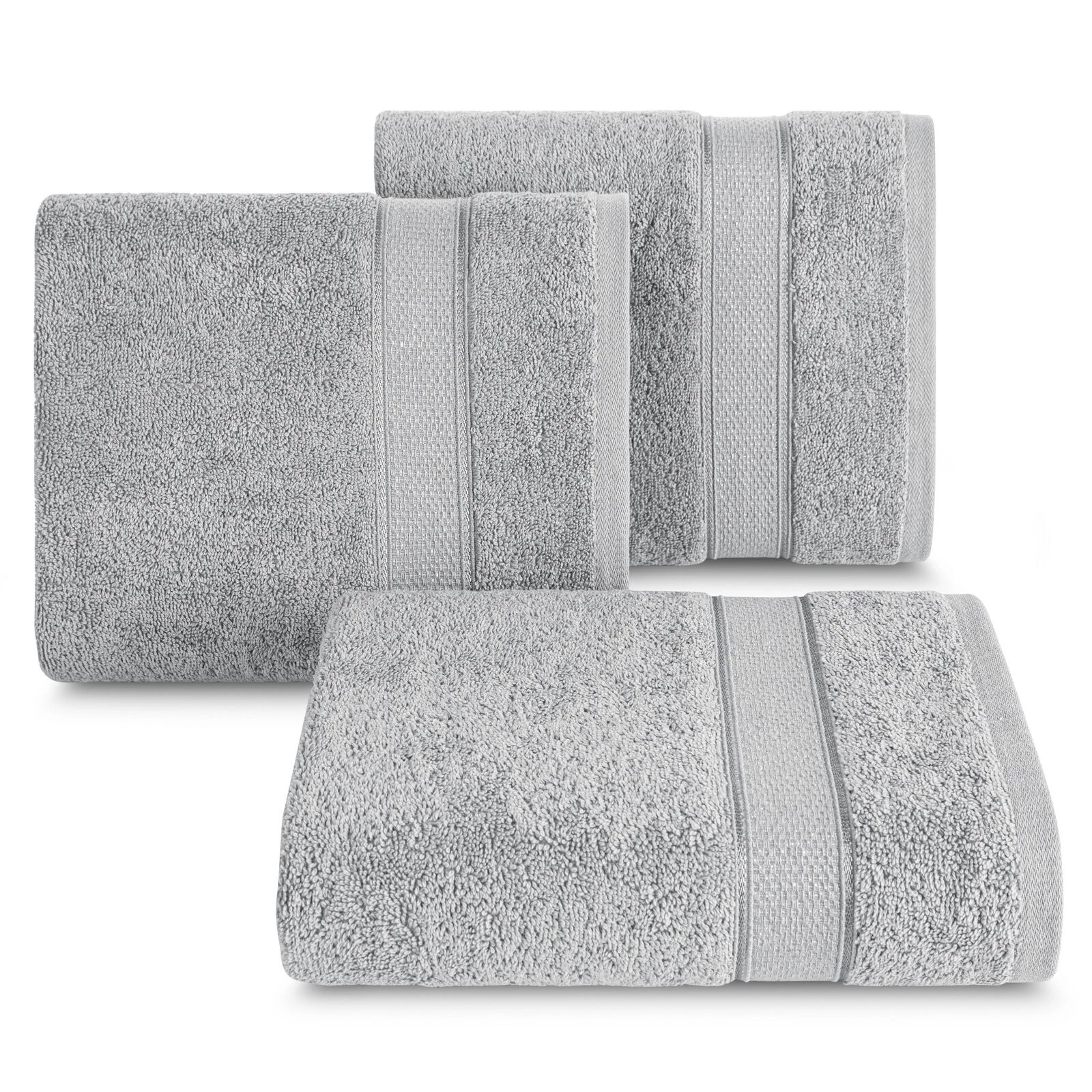 Ręcznik bawełniany z błyszczącą nicią szerokość: 50 cm, długość: 90 cm, kolor: srebrny, Gramatura: 500 GSM, Skład: 100% bawełna; część ozdobna: 95% bawełna, 5% poliester