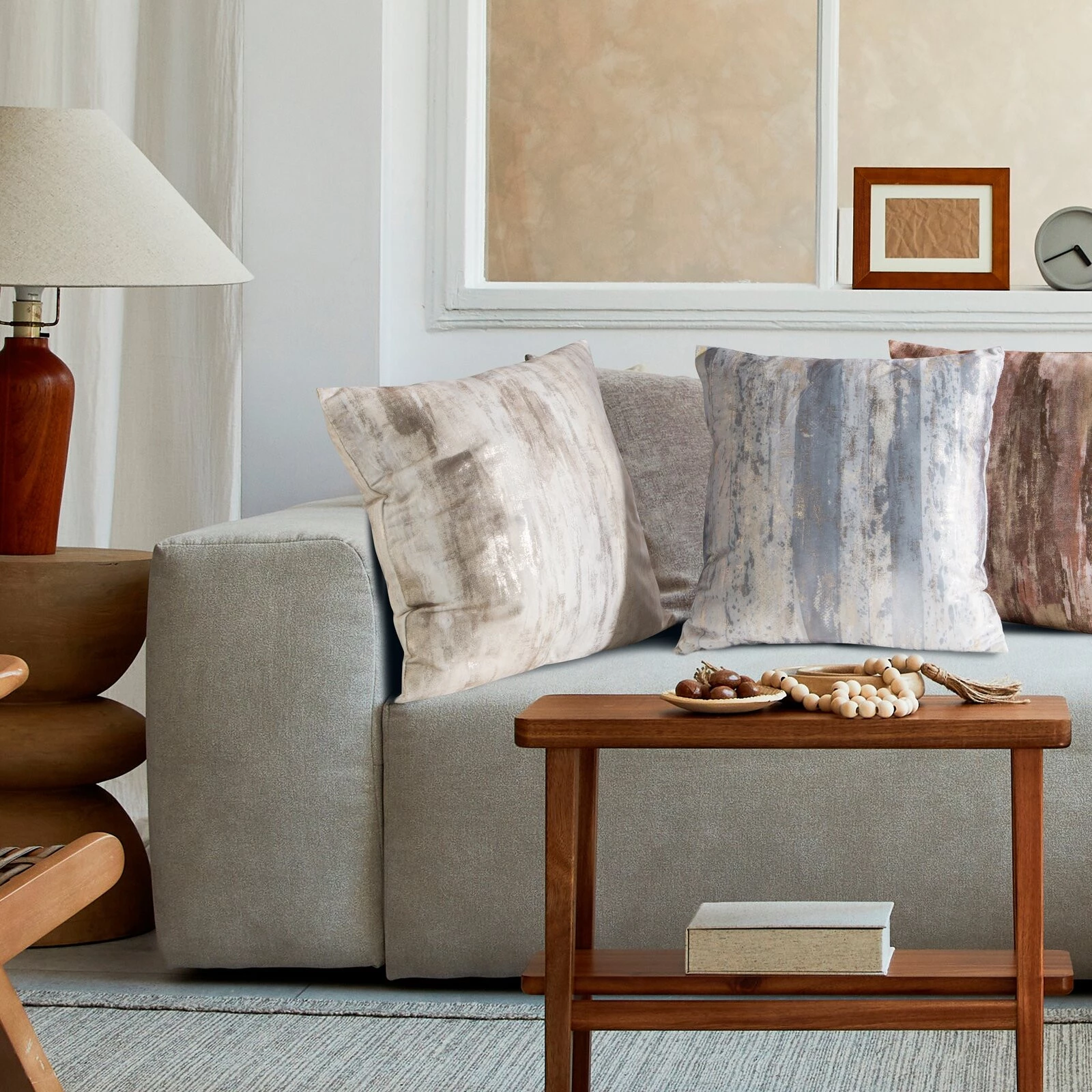 Poszewka welwetowa z metalicznym nadrukiem szerokość: 45 cm, długość: 45 cm, kolor: szary, Gramatura: 200 GSM, Skład: 100% poliester