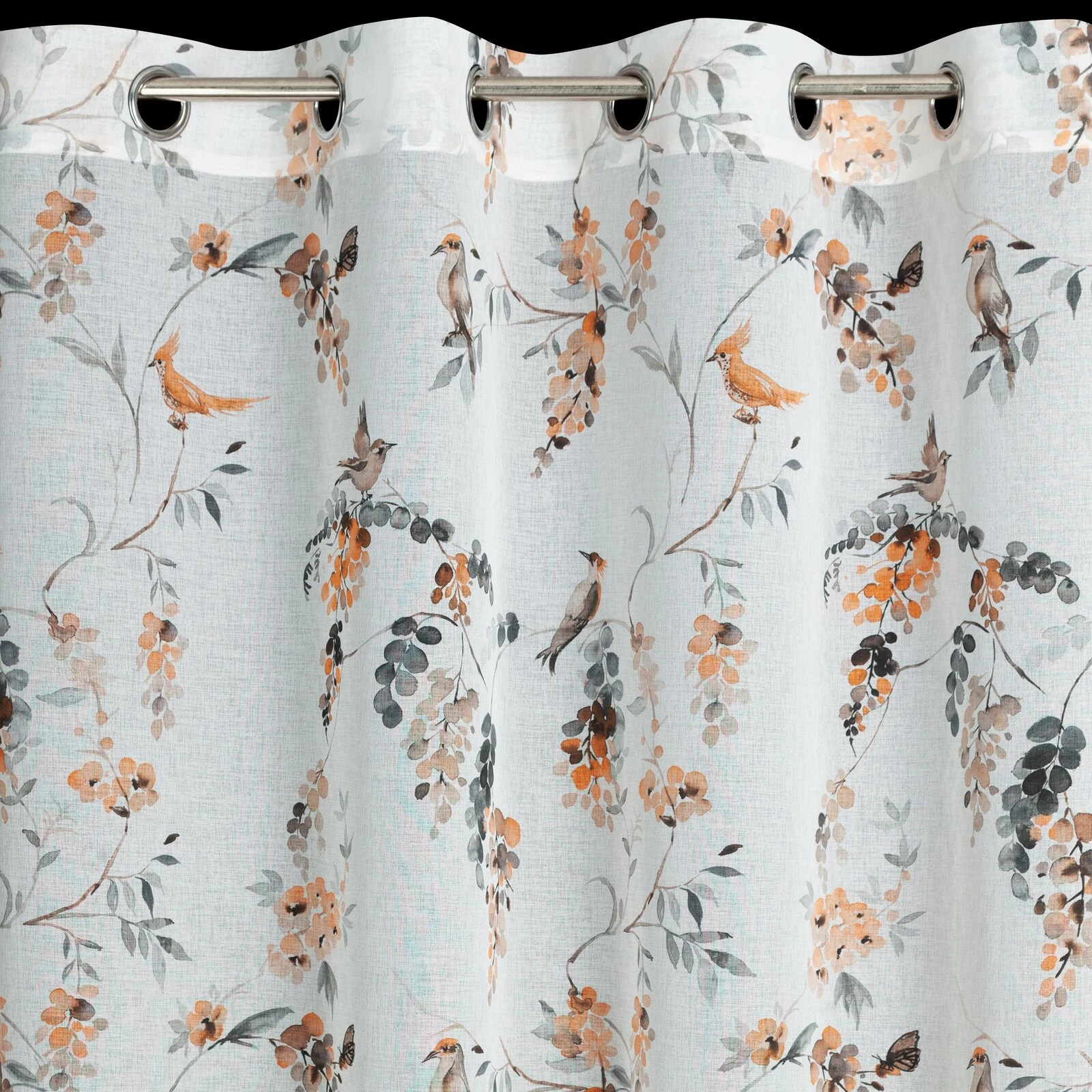 Zasłona gotowa z etaminy z motywem botanicznym szerokość: 140 cm, długość: 250 cm, kolor: rudy, Gramatura: 70 GSM, Skład: 100% poliester