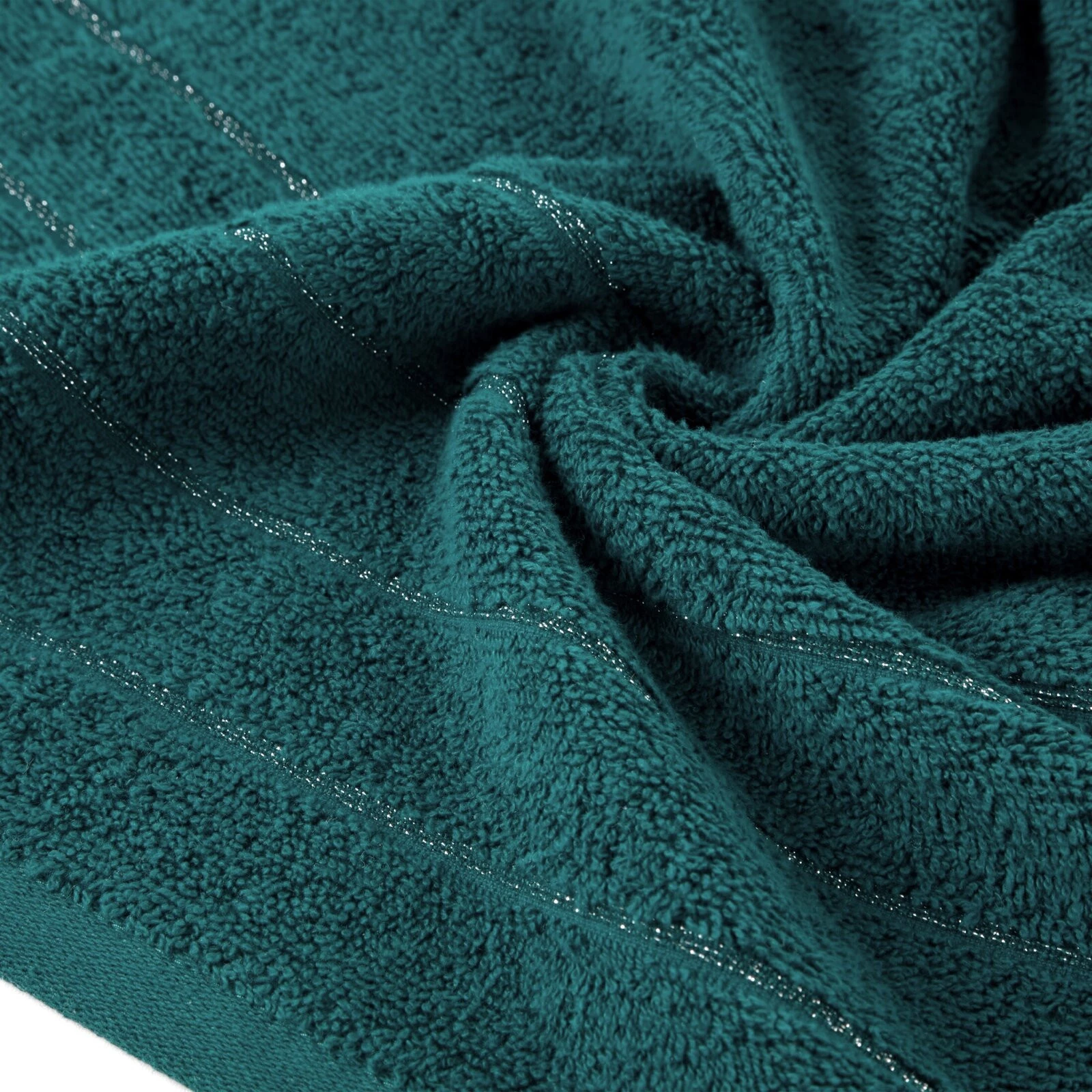 Ręcznik bawełniany zdobiony błyszczącą nicią szerokość: 30 cm, długość: 50 cm, kolor: turkusowy, Gramatura: 500 GSM, Skład: 100% bawełna; część ozdobna: 95% bawełna, 5% poliester