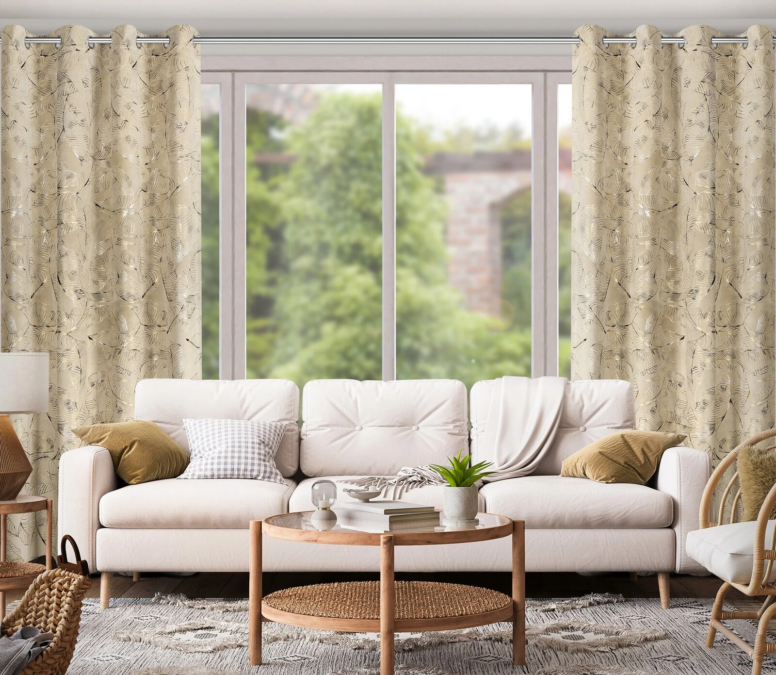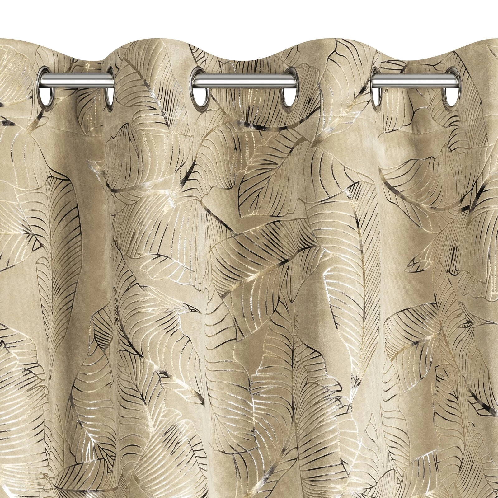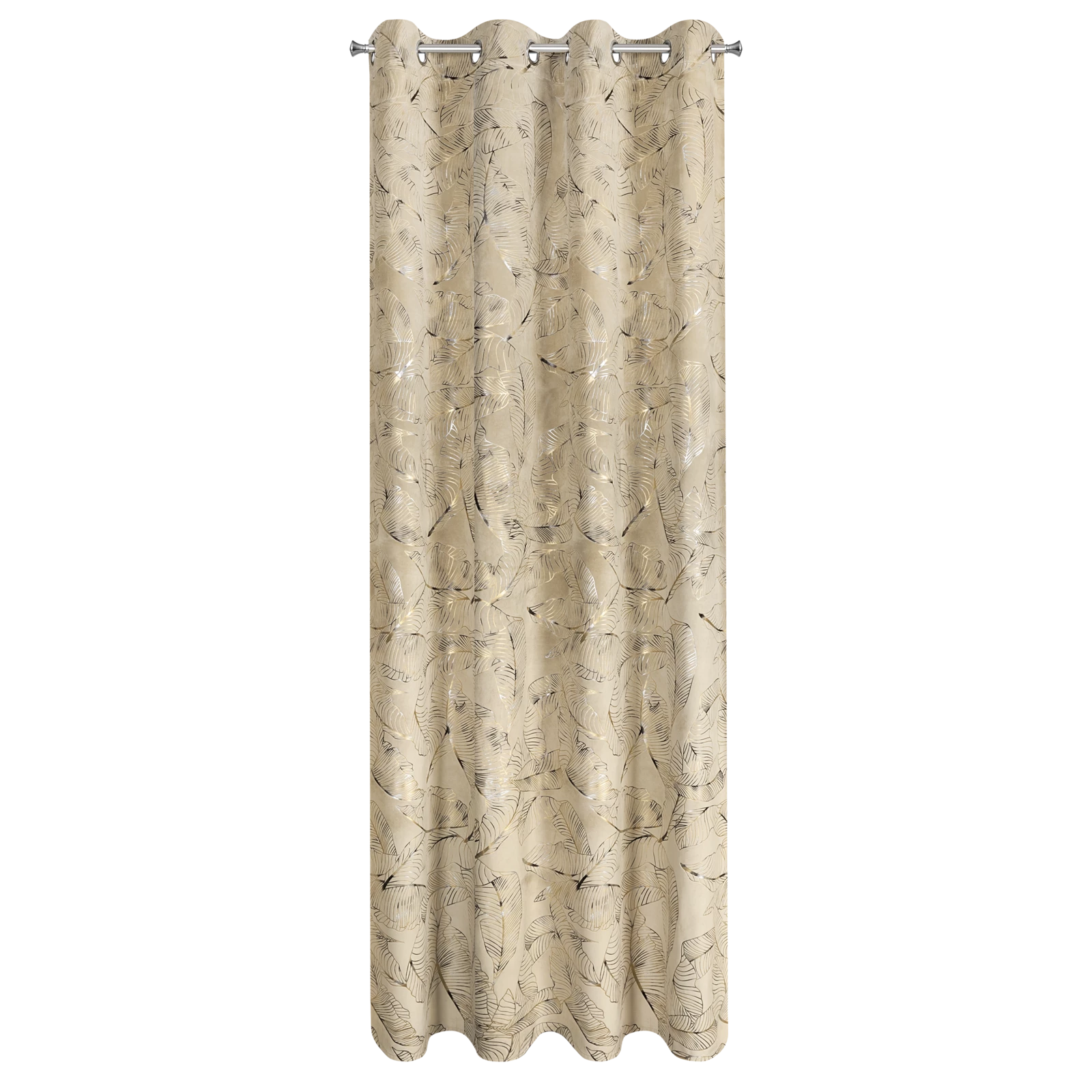 - Zasłona welwetowa z cieniowanym błyszczącym nadrukiem szerokość: 135 cm, długość: 250 cm, kolor: beżowy, Gramatura: 200 GSM, Skład: 100% poliester