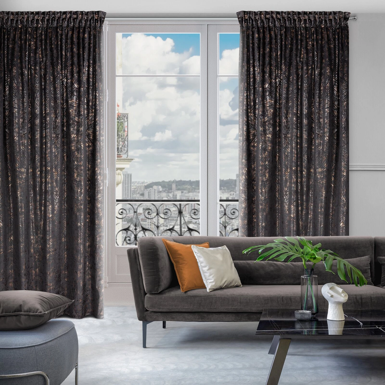 - Zasłona welwetowa z cieniowanym błyszczącym nadrukiem szerokość: 135 cm, długość: 270 cm, kolor: czarny, Gramatura: 200 GSM, Skład: 100% poliester