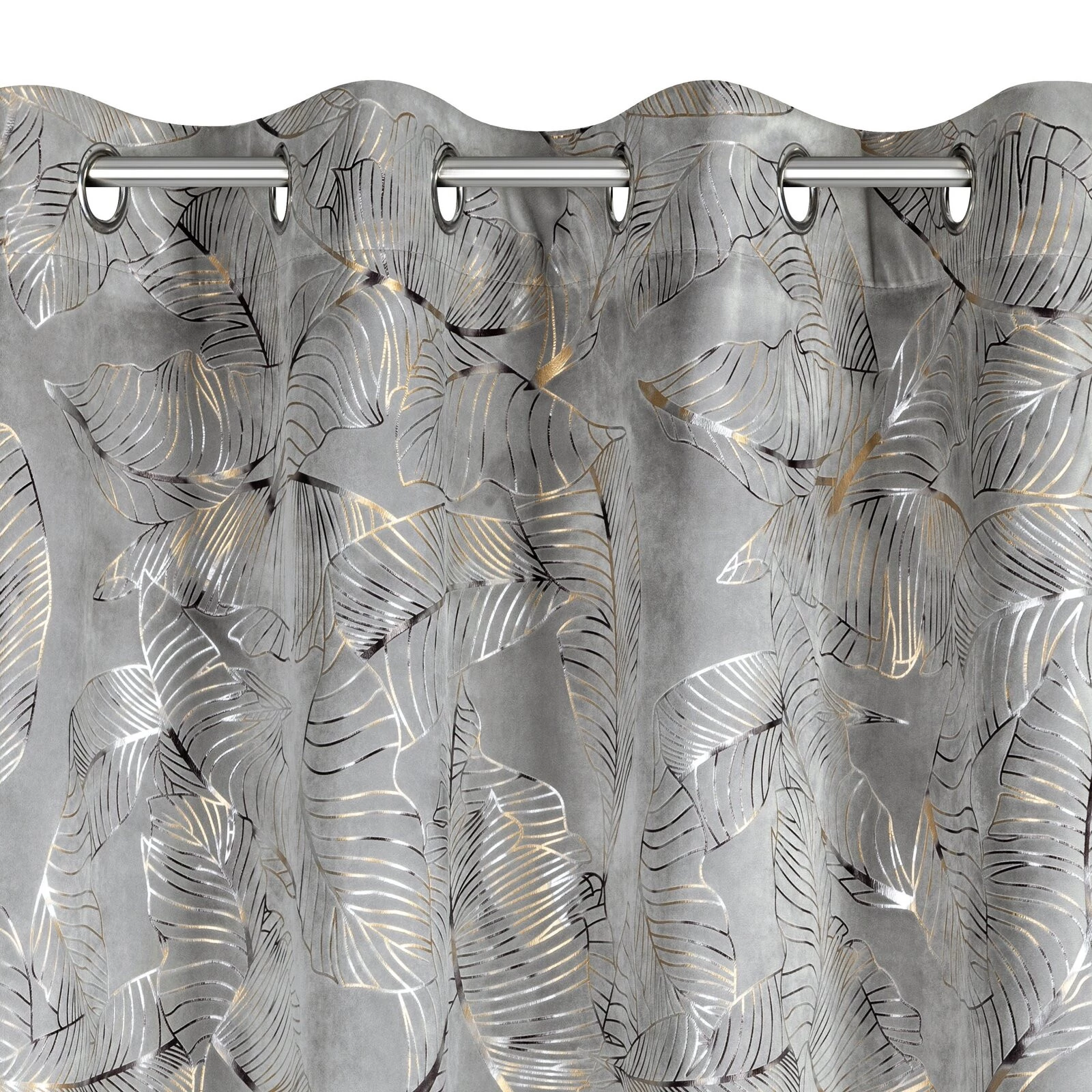 - Zasłona welwetowa z cieniowanym błyszczącym nadrukiem szerokość: 135 cm, długość: 250 cm, kolor: stalowy, Gramatura: 200 GSM, Skład: 100% poliester