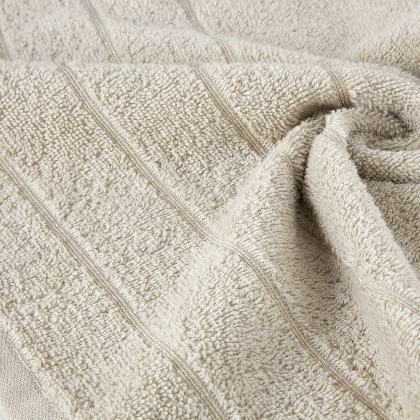 Ręcznik bawełniany zdobiony błyszczącą nicią szerokość: 30 cm, długość: 50 cm, kolor: beżowy, Gramatura: 500 GSM, Skład: 100% bawełna; część ozdobna: 95% bawełna, 5% poliester