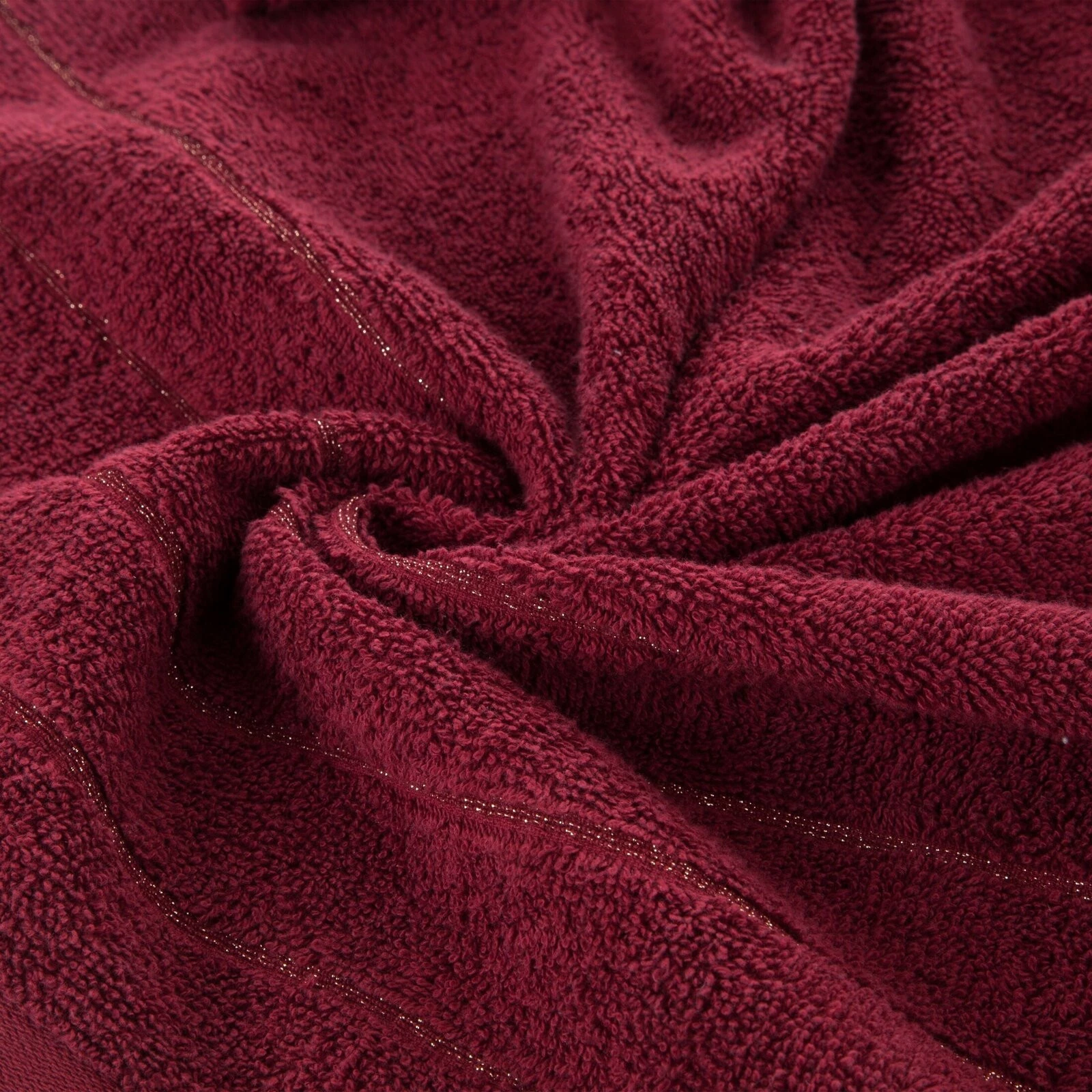 Ręcznik bawełniany zdobiony błyszczącą nicią szerokość: 30 cm, długość: 50 cm, kolor: bordowy, Gramatura: 500 GSM, Skład: 100% bawełna; część ozdobna: 95% bawełna, 5% poliester