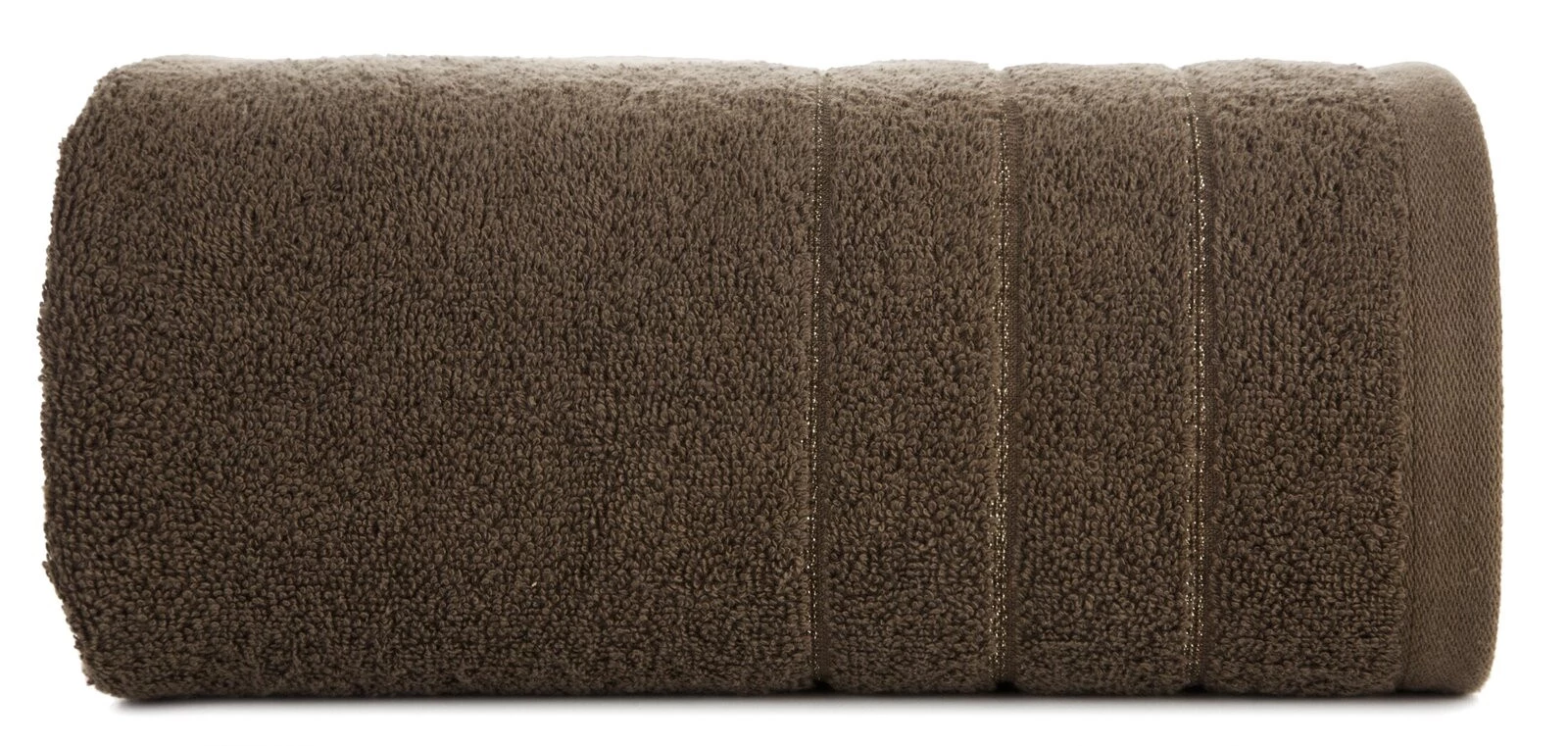 Ręcznik bawełniany zdobiony błyszczącą nicią szerokość: 50 cm, długość: 90 cm, kolor: ciemnobrązowy, Gramatura: 500 GSM, Skład: 100% bawełna; część ozdobna: 95% bawełna, 5% poliester