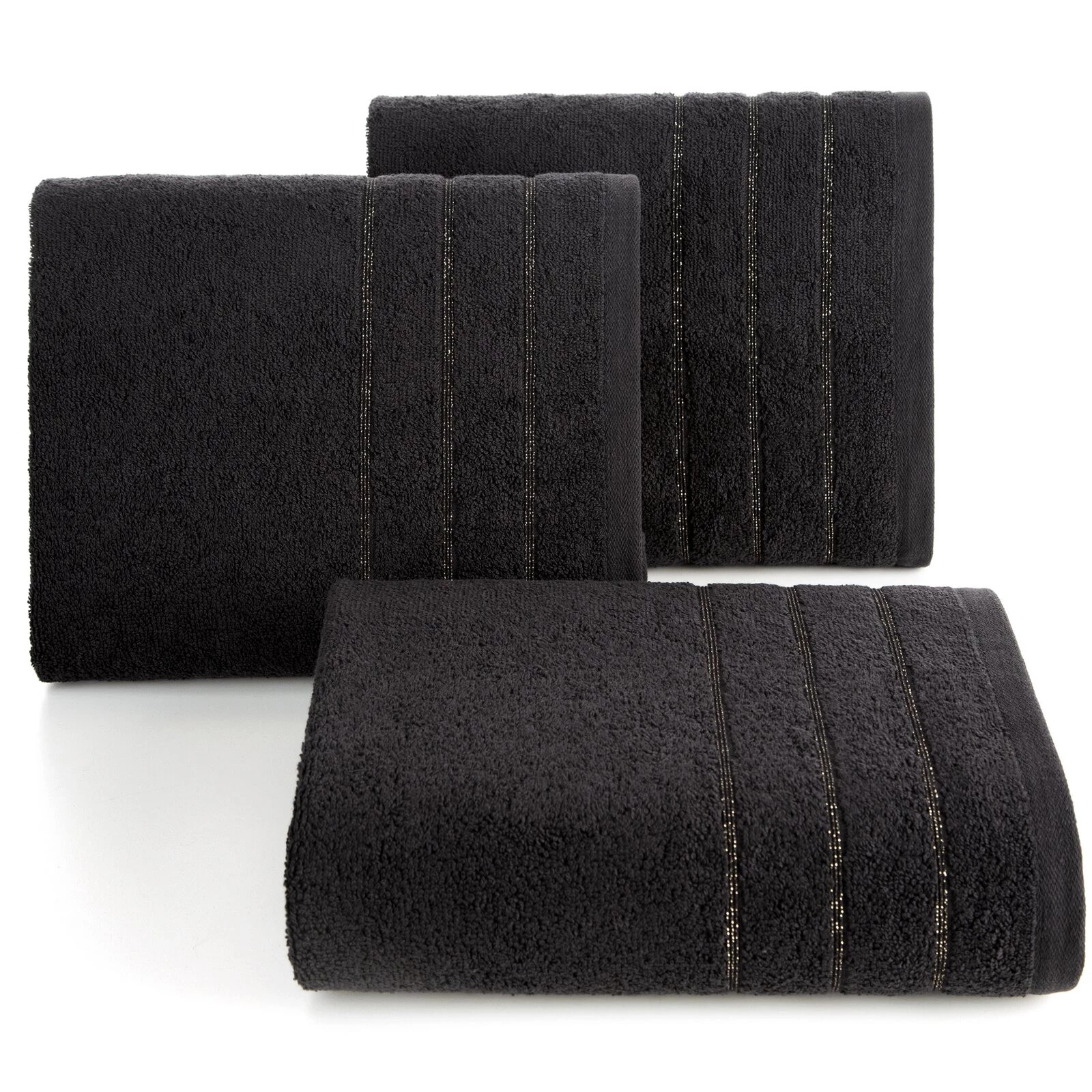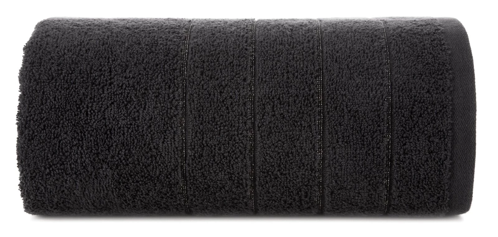 Ręcznik bawełniany zdobiony błyszczącą nicią szerokość: 70 cm, długość: 140 cm, kolor: czarny, Gramatura: 500 GSM, Skład: 100% bawełna; część ozdobna: 95% bawełna, 5% poliester