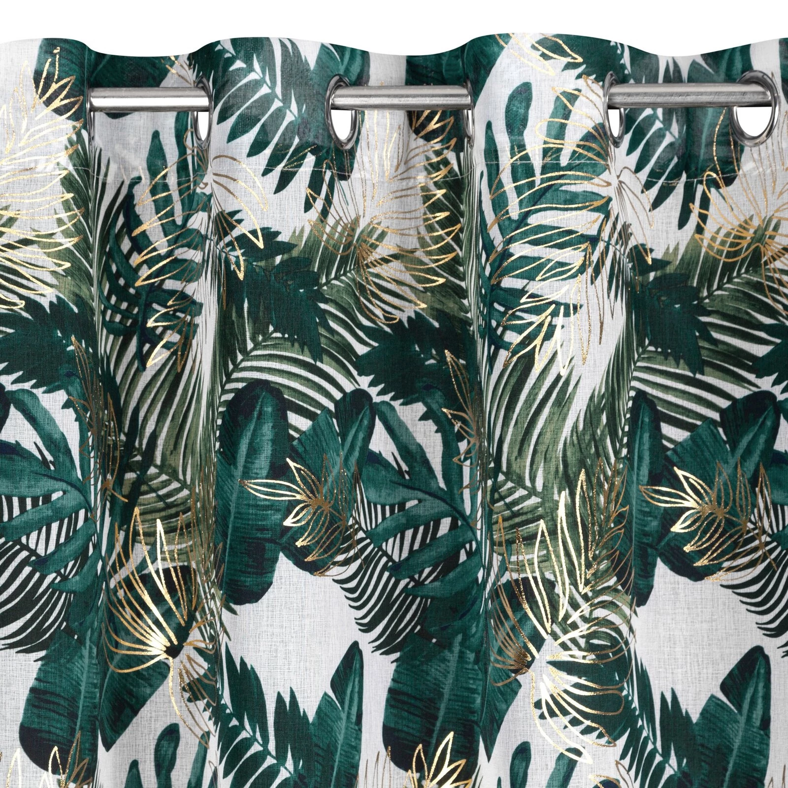 - Zasłona z motywami botanicznymi z błyszczącym nadrukiem szerokość: 140 cm, długość: 250 cm, kolor: zielony, Gramatura: 80 GSM, Skład: 100% poliester
