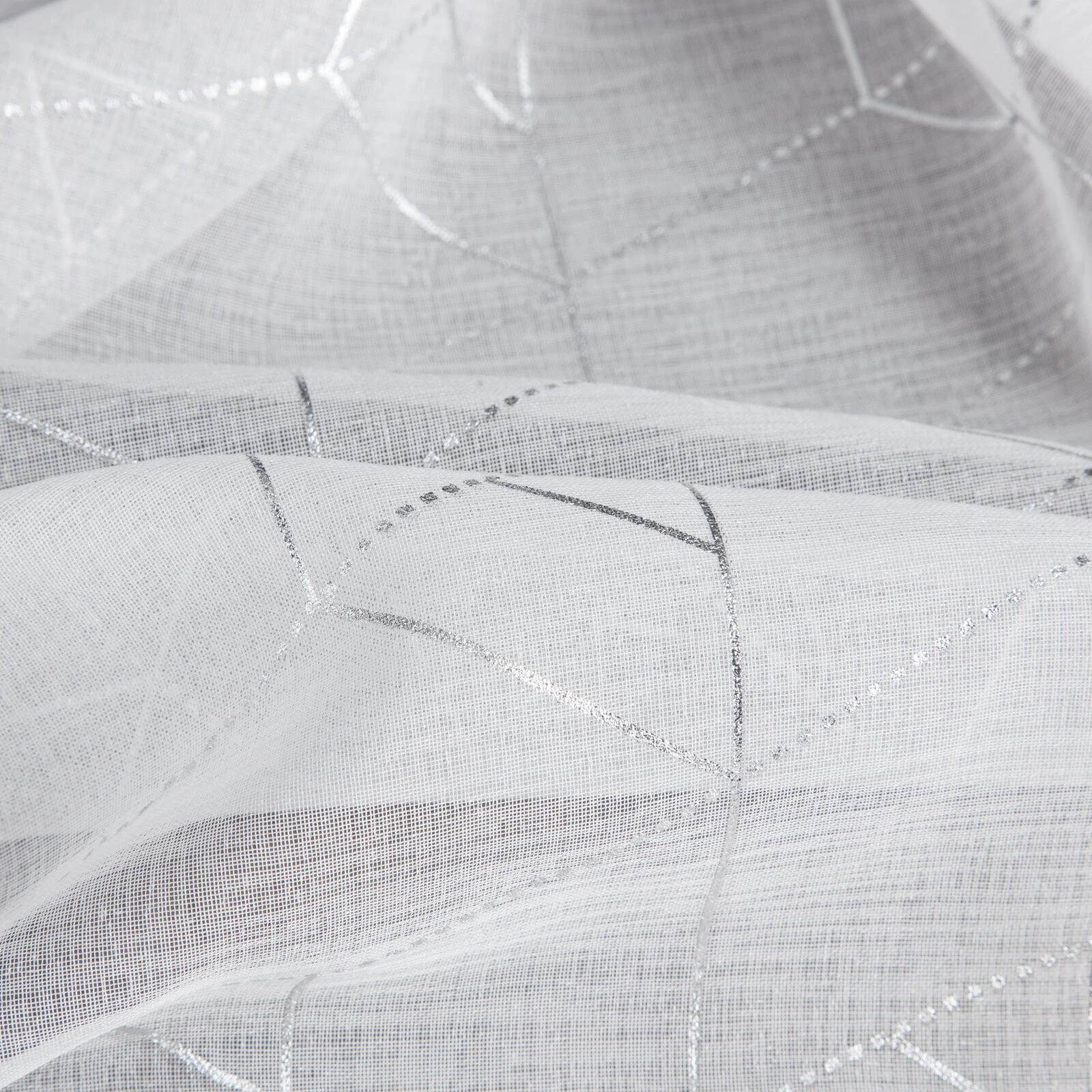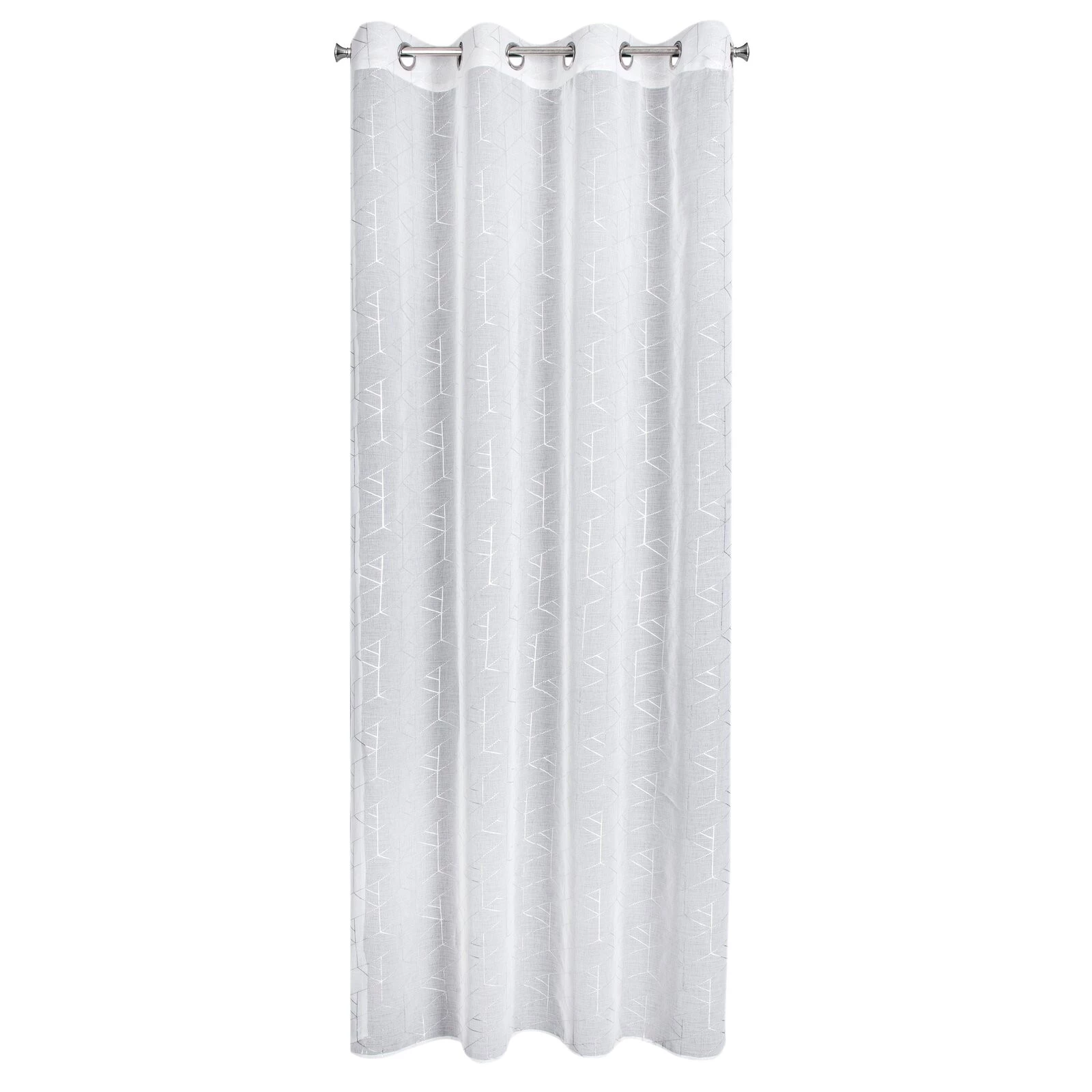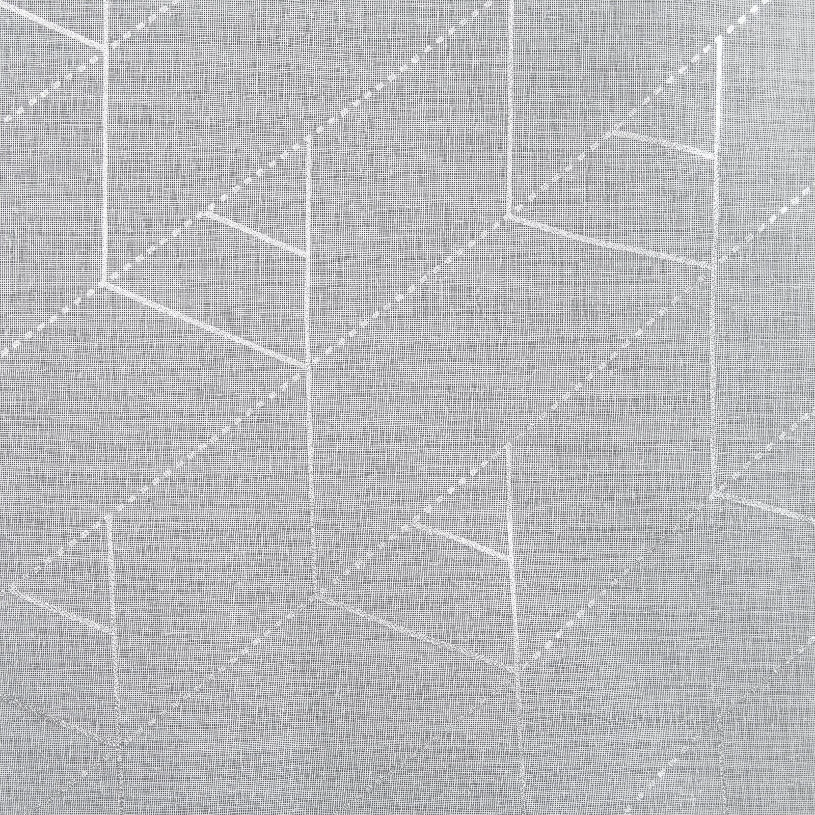 - Firana gotowa ze srebrnym nadrukiem geometrycznym szerokość: 140 cm, długość: 250 cm, kolor: biały, Gramatura: 80 GSM, Skład: 100% poliester