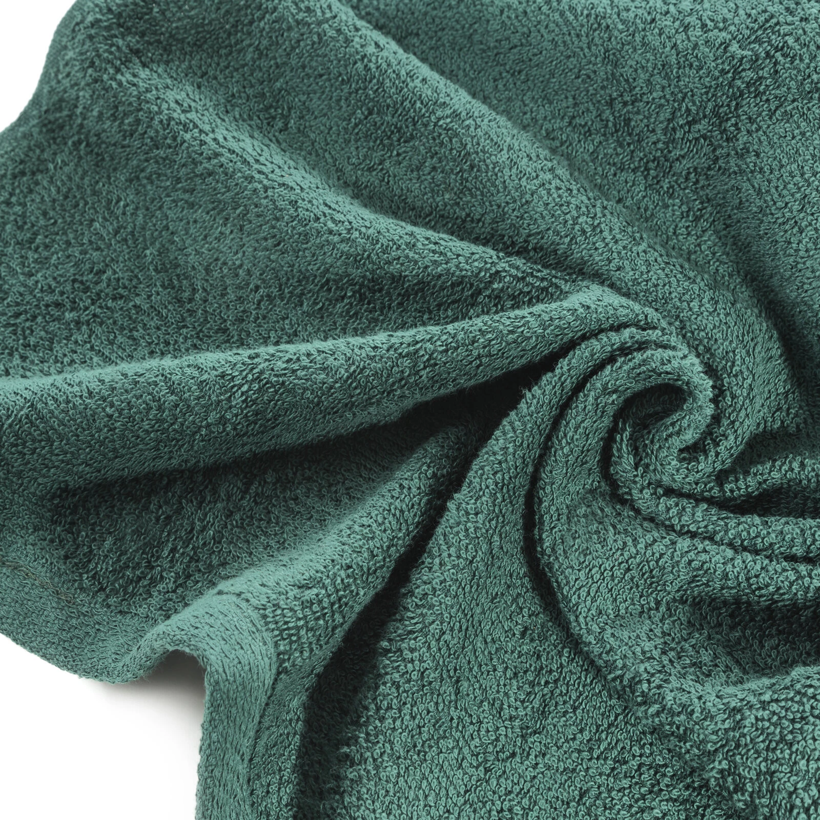 Jednokolorowy, gładki ręcznik kąpielowy z miękkiej tkaniny bawełnianej o splocie frotte. Lekki, trwały i bardzo chłonny. Kolory odporne na częste pranie. szerokość: 50 cm, długość: 90 cm, kolor: ciemnozielony, Gramatura: 400 GSM, Skład: 100% bawełna